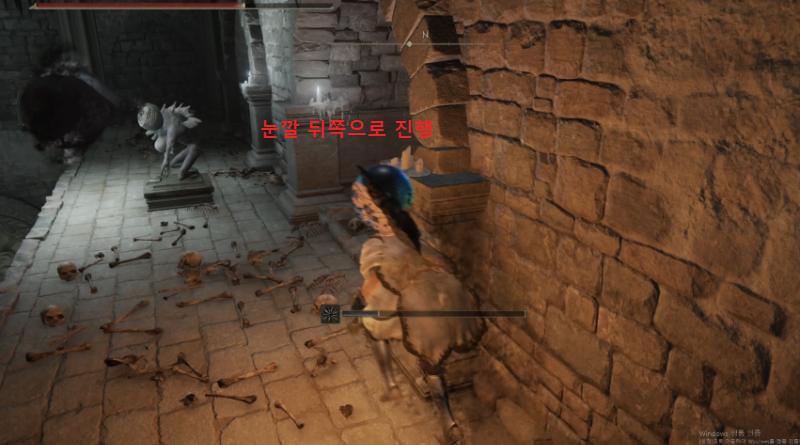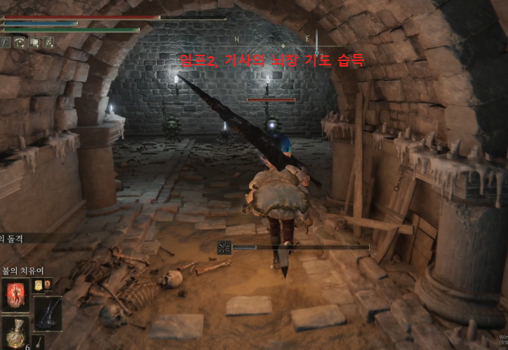 직진하면 임프 2마리 사이에 기도 기사의 뇌창이 있다.