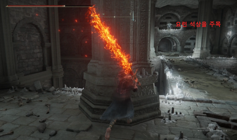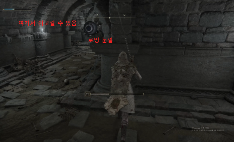 저기 보이는 석상이 빛바랜자를 인식하면 눈알이 뜨면서 즉사 게이지가 올라가기 시작한다.