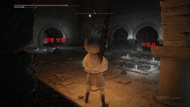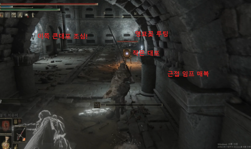 하고 진행하면, 임프 2마리와 마법사가 저격하는 방이 있다. 발 밑에 마법 상당히 아프니 조심하자.