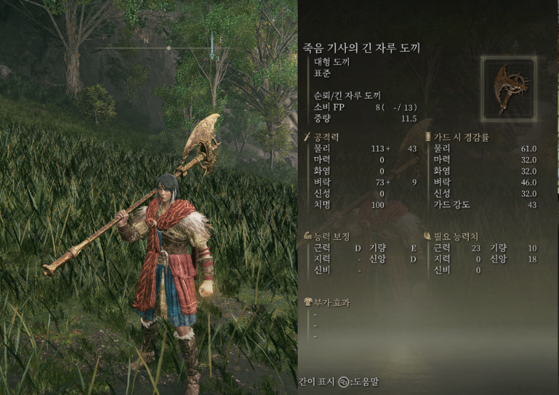 영예의 옷 세트 룩/ 죽음 기사의 긴 자루 도끼 룩/스탯