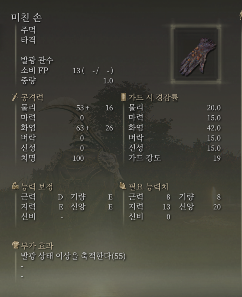 폐교회 안의 그림자 나무 파편에서 왼쪽으로 가면, 미친 불의 조향병을 루팅할 수 있다.