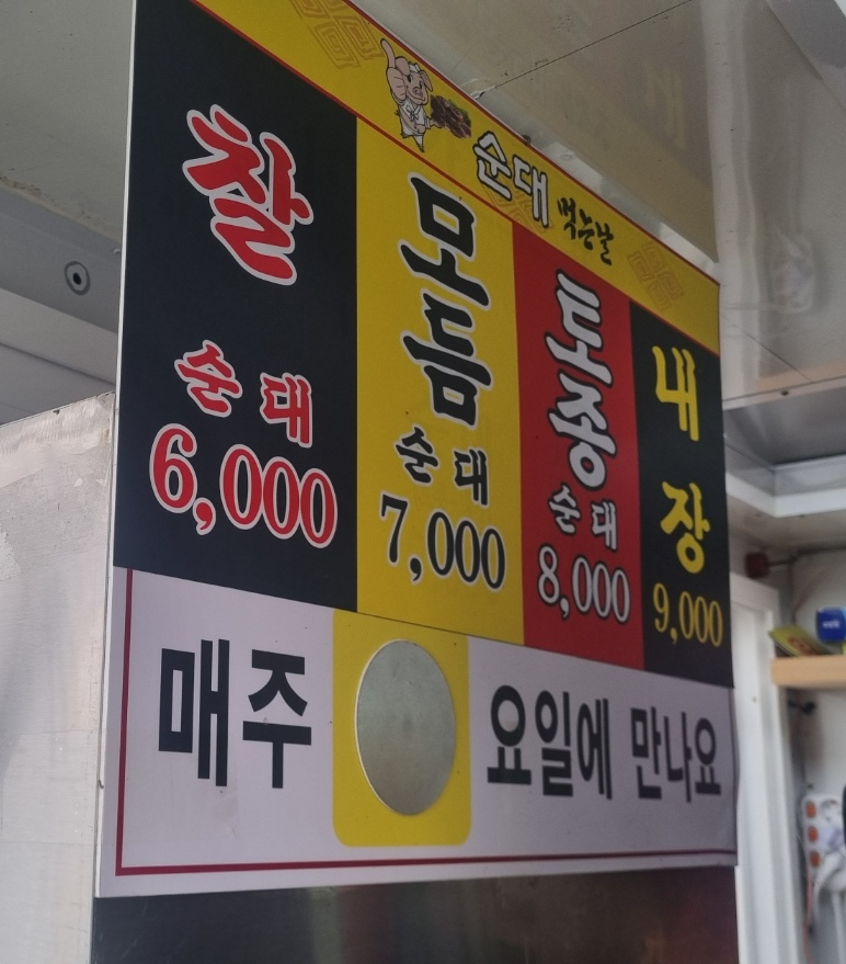 주력 메뉴: 찰순대(6000원), 모듬(찰+토종)순대(7000원), 토종순대(8000원)