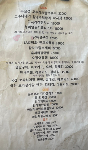 메뉴판 정보는 공간 정보에서 퍼왔다.