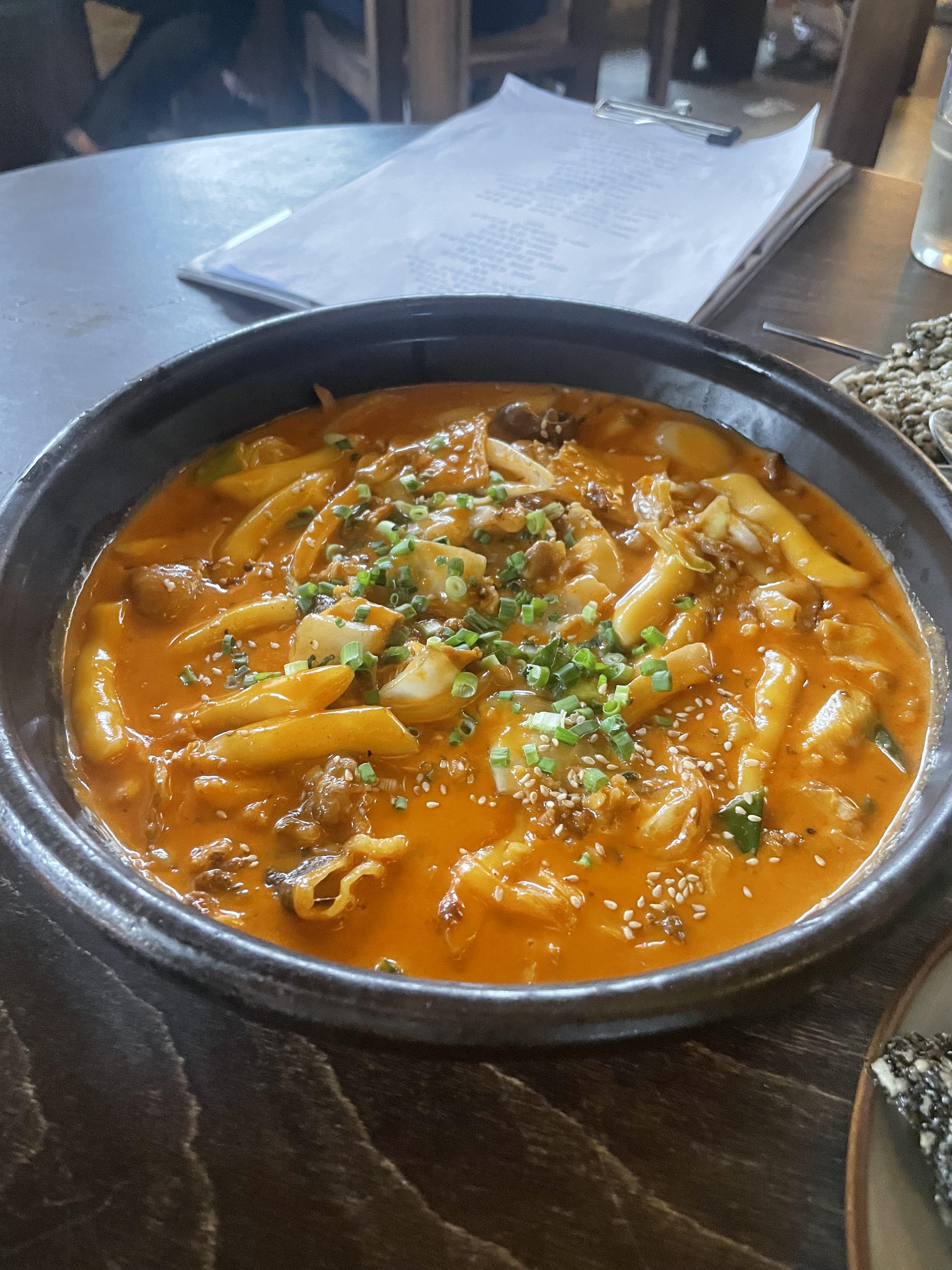 양념이 진짜 맛있었다.. 한입 먹고 깜짝 놀랐다. 이집 요리 잘하네.. 인기 있는 이유가 있구나 하는 생각이 들었다. 김부각을 떡볶이에 찍어먹어도 맛있다. 은근 이집 사이드 메뉴가 떡볶이랑 어울리는게 많아서(감태김밥, 진미채 튀김 등) 시키면 든든한 안주가 될 것이라 생각한다. 이런 매콤 느끼한 양념이 또 막걸리랑 기똥차게 어울리지.....떡은 밀떡(나는 밀떡러버)