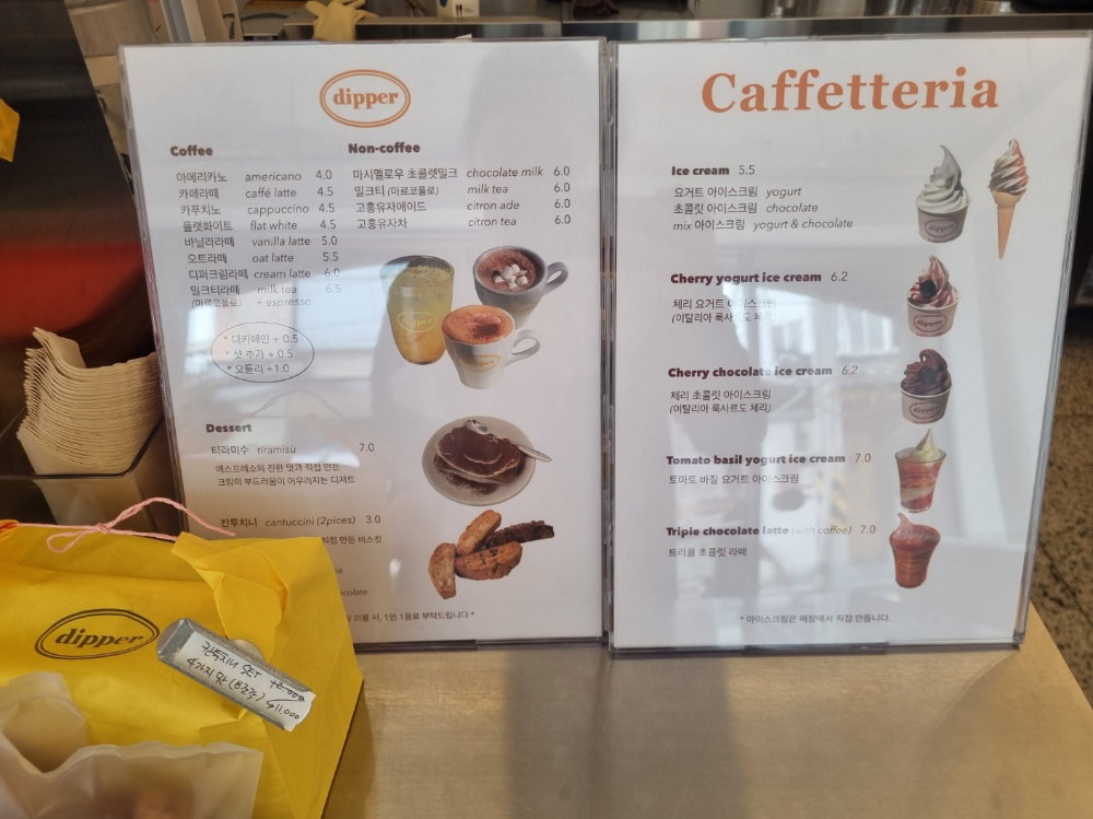 디퍼는 서촌의 디저트 명소 스쿠퍼 젤라떼리아의 형제?가족? 가게로 이탈리아 식 디저트를 판매한다. 메뉴가 계속 변경되는데, 이전에는 그라니따, 스폴리아텔라 등의 이탈리아 디저트를 맛볼수 있었다. 스폴리아텔라 진짜 좋아했는데 돌아와 ㅠ.ㅠㅋㅋ