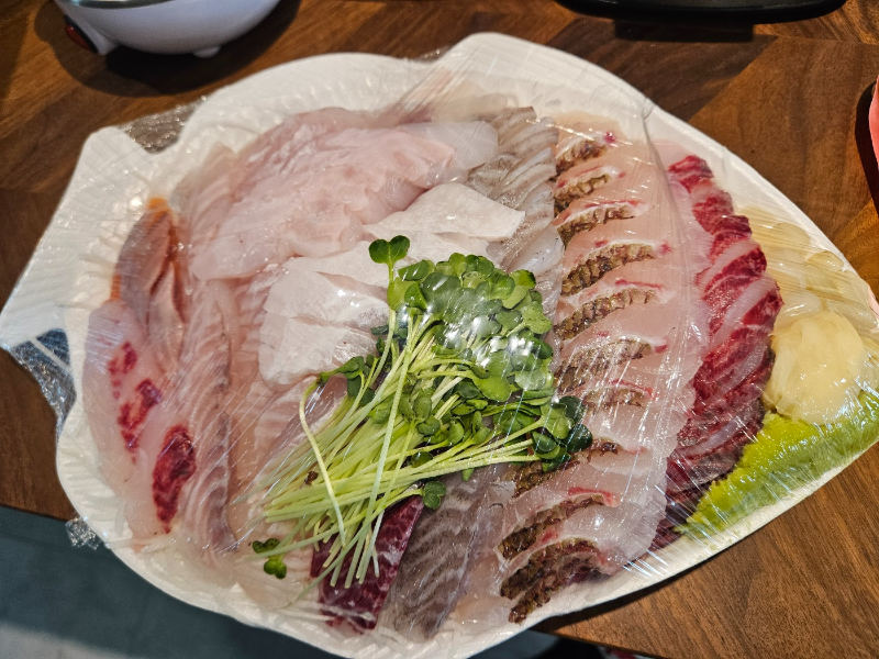 농어/광어/숭어/연어/도미가 왔는데 진짜 너무 맛있었다. 이번에 먹은 게 역대급으로 맛있었던거 같다..