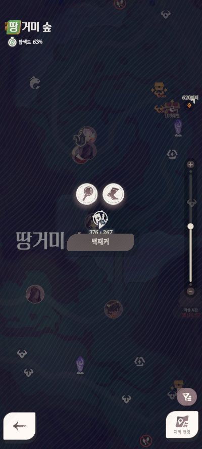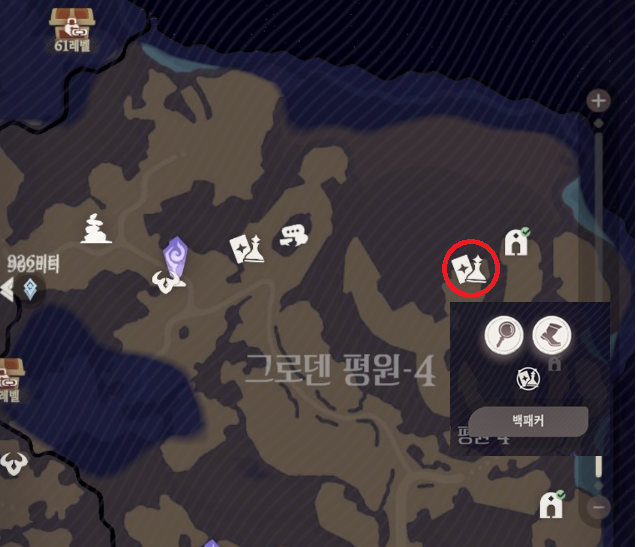 맵의 아래와 같은 아이콘 중, 클릭했을 때 백패커라고 적혀 있는 사람에 가서 수행할 수 있는 미니게임이다