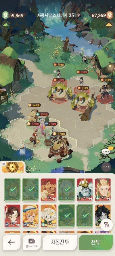 탱커가 못버틸 경우 세미아를 프라벨로 교차해서 많이 사용했다. (프라벨 쫄따구가 탱을 조금더 버티게 도와주고, 추후 궁이 대신 탱킹을 해준다) 또한 탱커가 아픈 스테이지는 탱커를, 딜러가 중요한 스테이지는 딜러를 고렙 슬롯에 넣어주었다. (공명의 수정의 레벨은 고정이어서 렙을 유지해서 챔을 맘대로 바꿀 수 있다.)