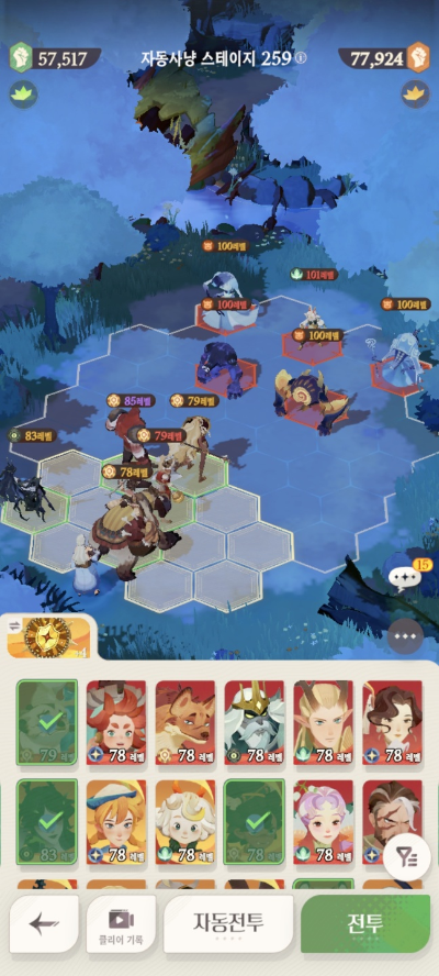 스테이지 259 (잘 안대서 오만떼만 진형,메아리 다해보다 등급 낮은 애 고랩 줬음- 아래 진형으로 6트?7트 한듯)