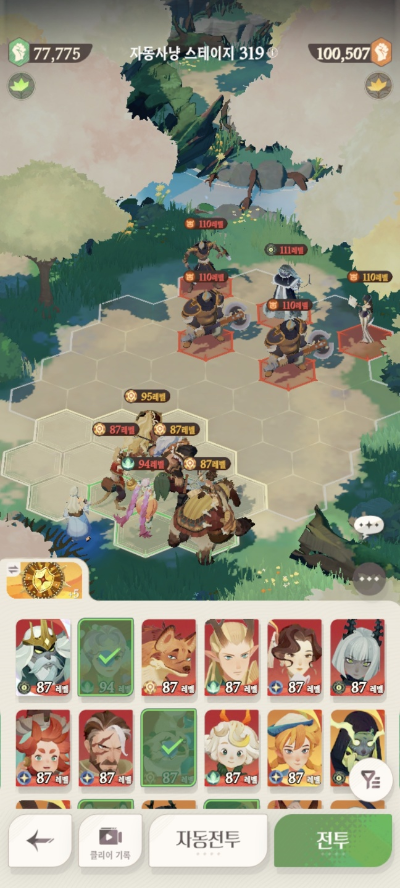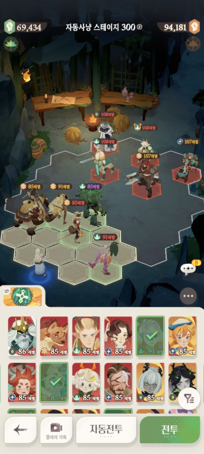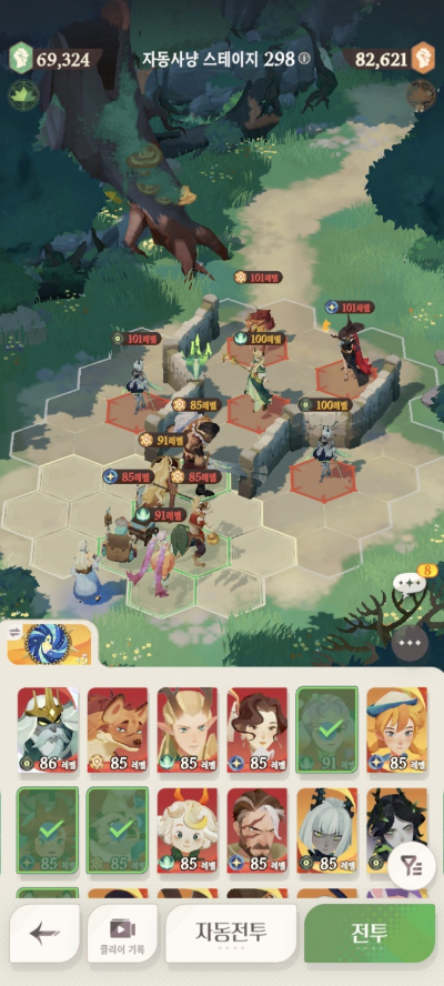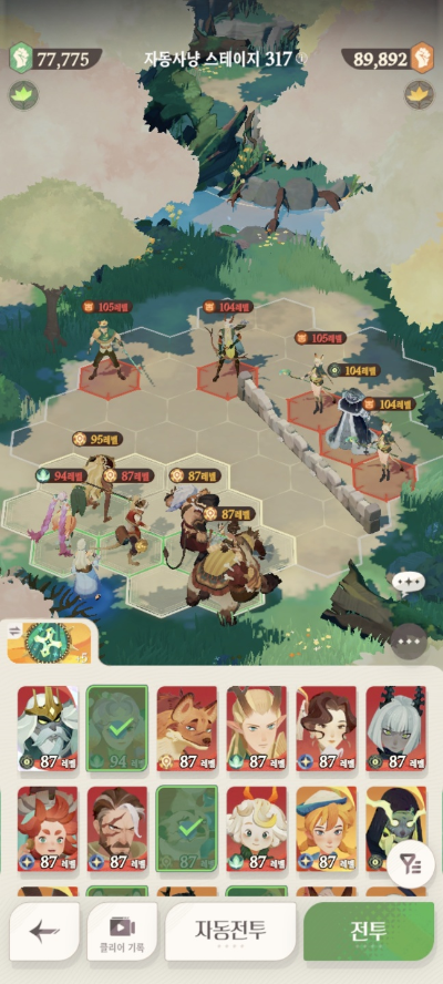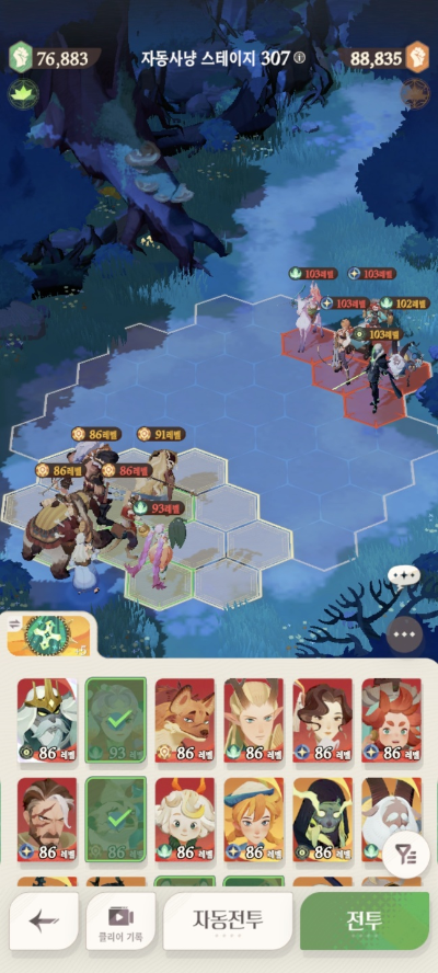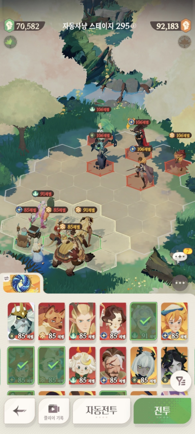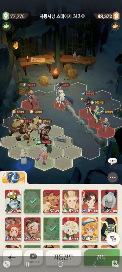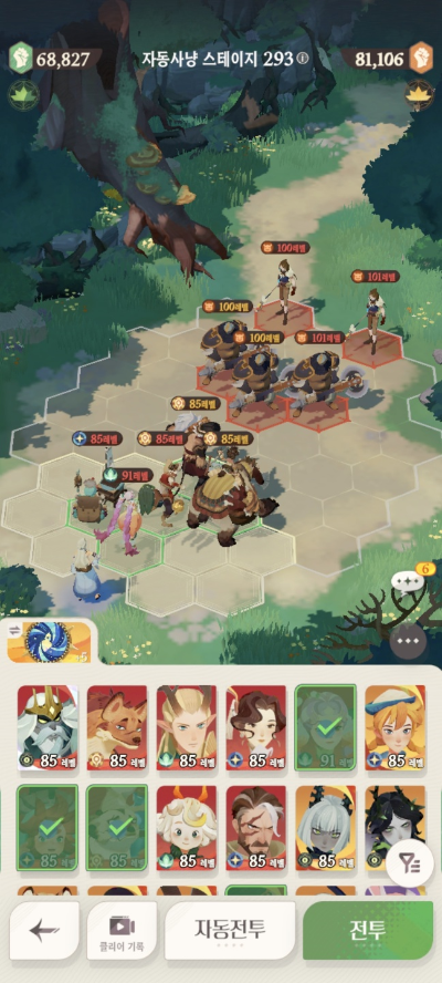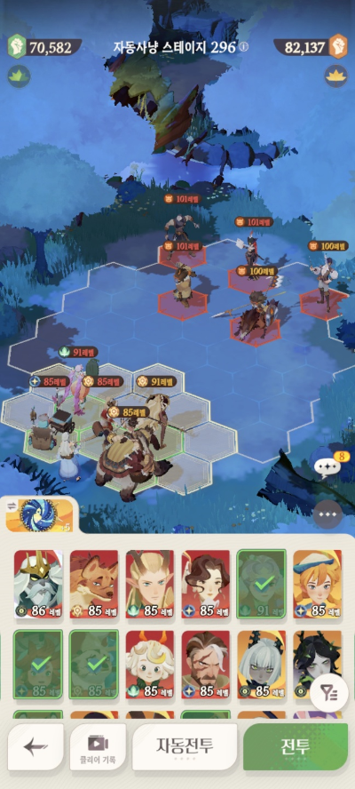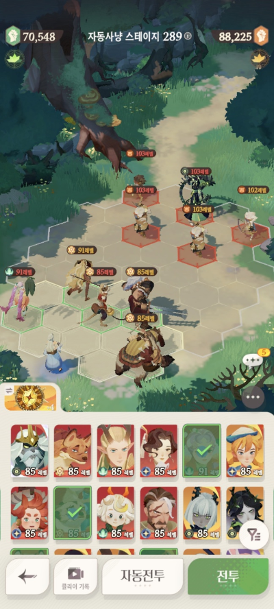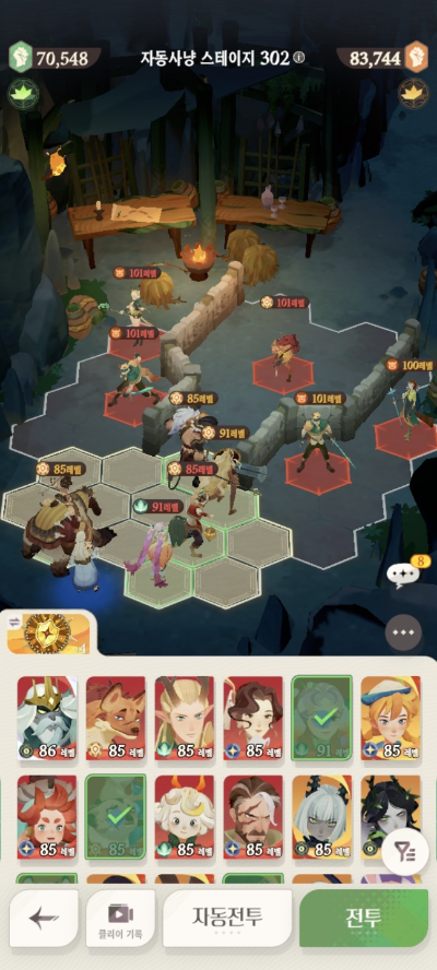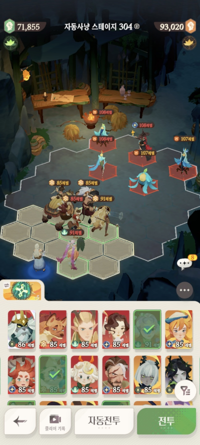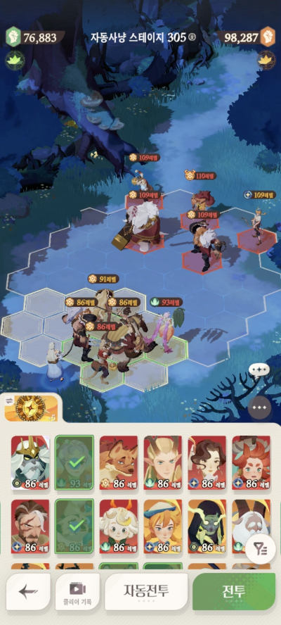 또한 탱커가 아픈 스테이지는 탱커를, 딜러가 중요한 스테이지는 딜러를 고렙 슬롯에 넣어주었다. (공명의 수정의 레벨은 고정이어서 렙을 유지해서 챔을 맘대로 바꿀 수 있다.) 주 딜러(전사나 사수) 와 탱커군 아이템도 막힐때마다 잘 업그레이드 해줍시다.