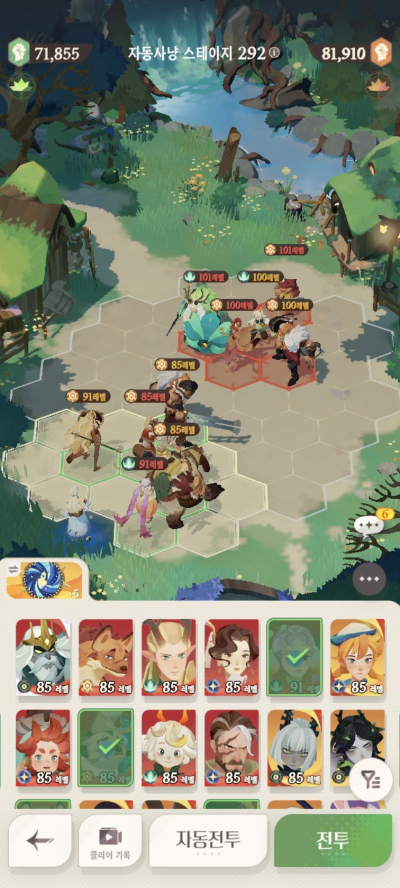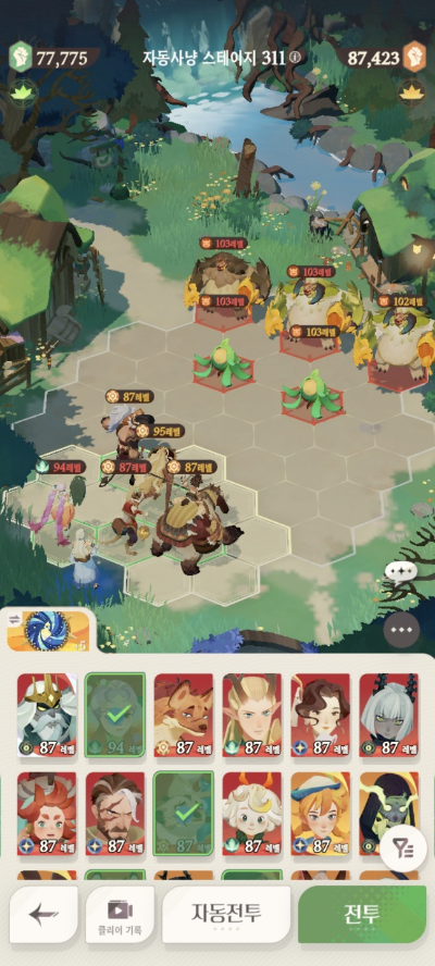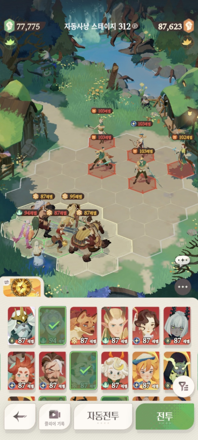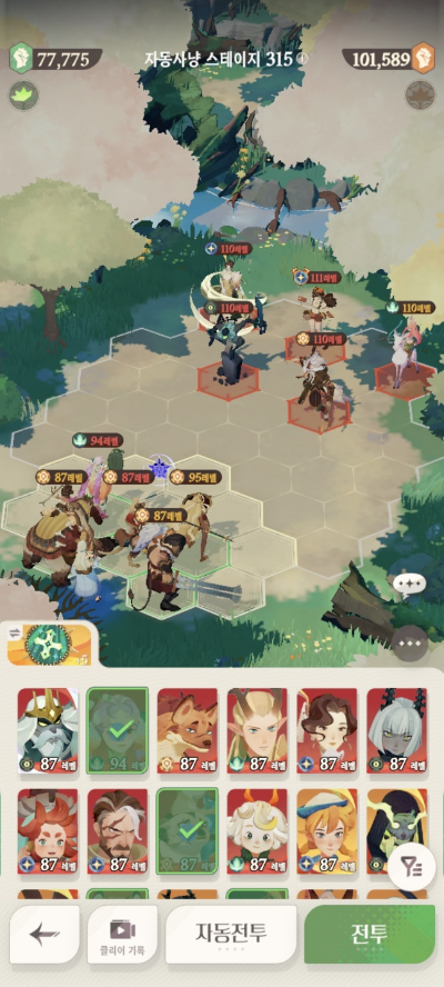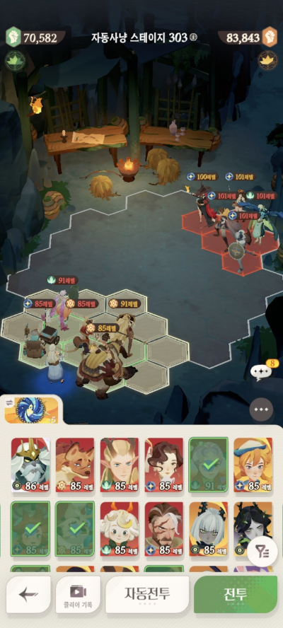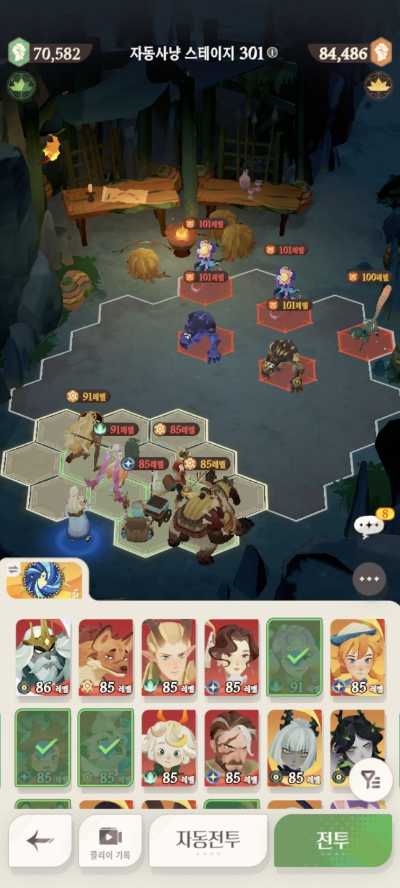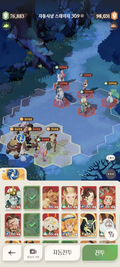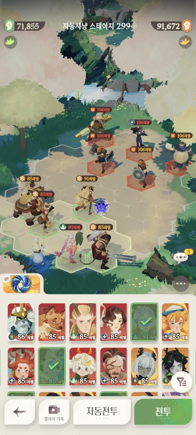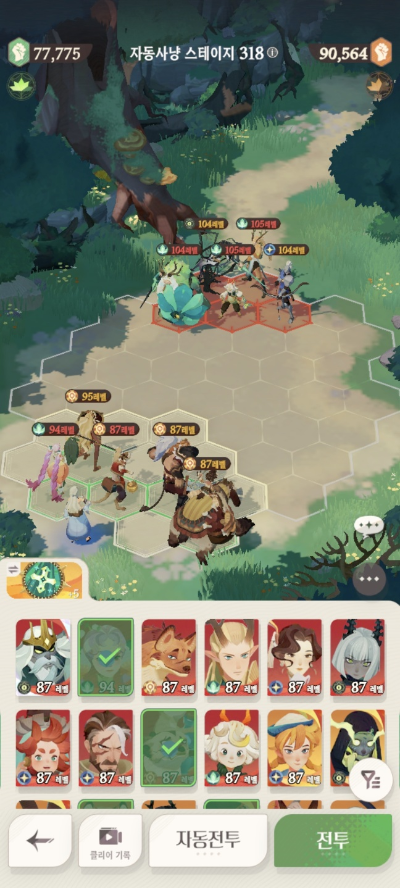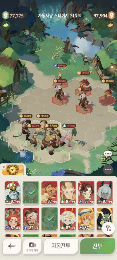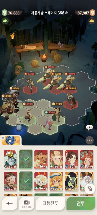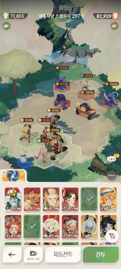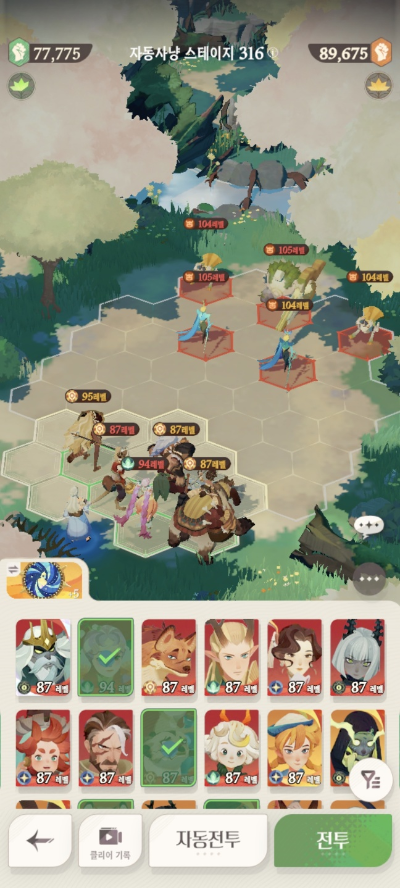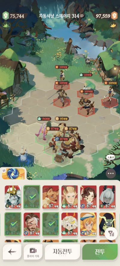 또한 탱커가 아픈 스테이지는 탱커를, 딜러가 중요한 스테이지는 딜러를 고렙 슬롯에 넣어주었다. (공명의 수정의 레벨은 고정이어서 렙을 유지해서 챔을 맘대로 바꿀 수 있다.) 주 딜러(전사나 사수) 와 탱커군 아이템도 막힐때마다 잘 업그레이드 해줍시다.