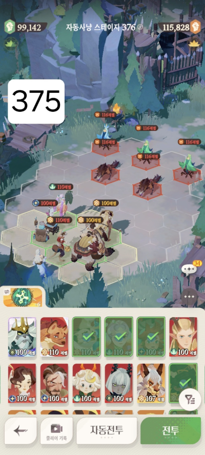 스테이지 375: 375 찍는걸 깜빡해서, 그 다음 스테이지에서 찍었다. 아래 진형/메아리로 깻다