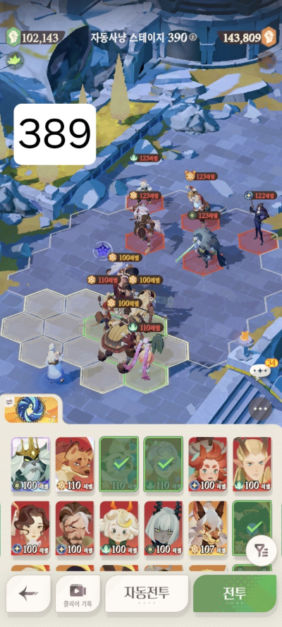 스테이지 389: 379 찍는걸 깜빡해서, 그 다음 스테이지에서 찍었다. 아래 진형/메아리로 깻다