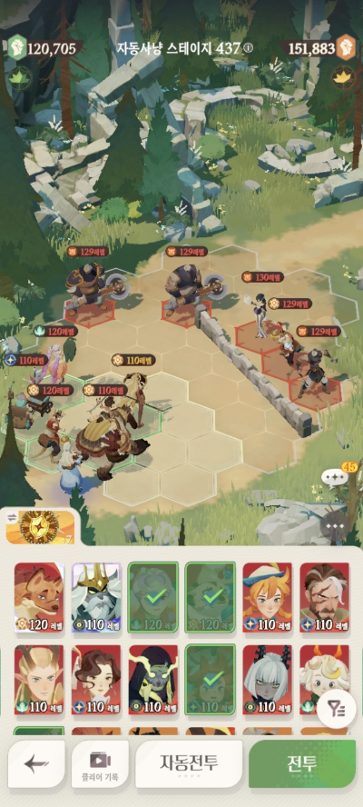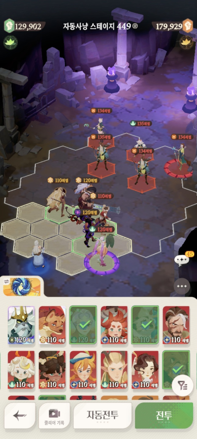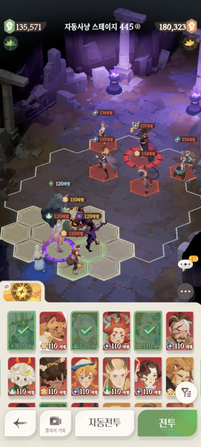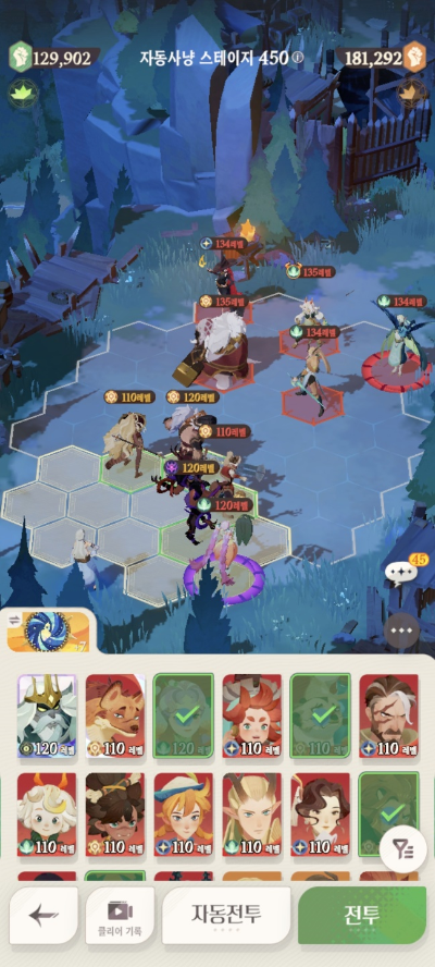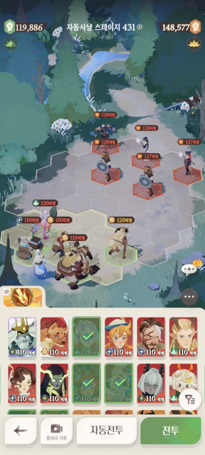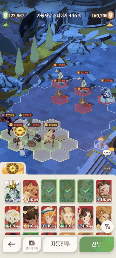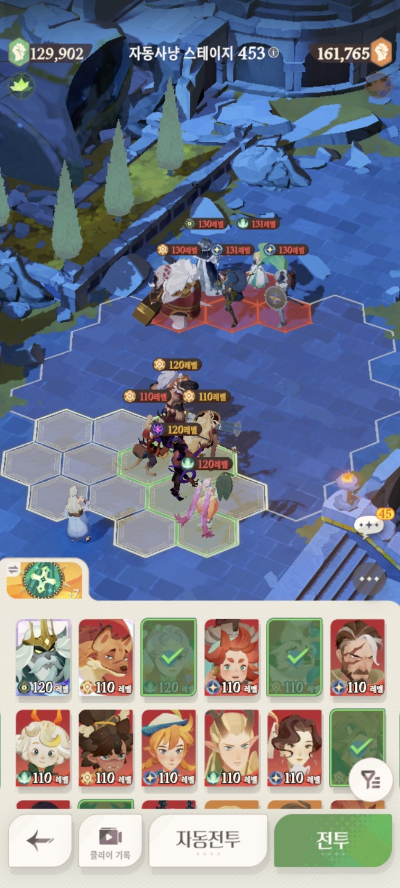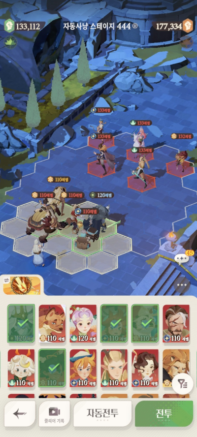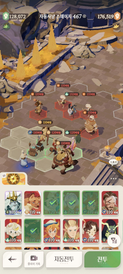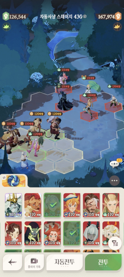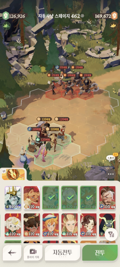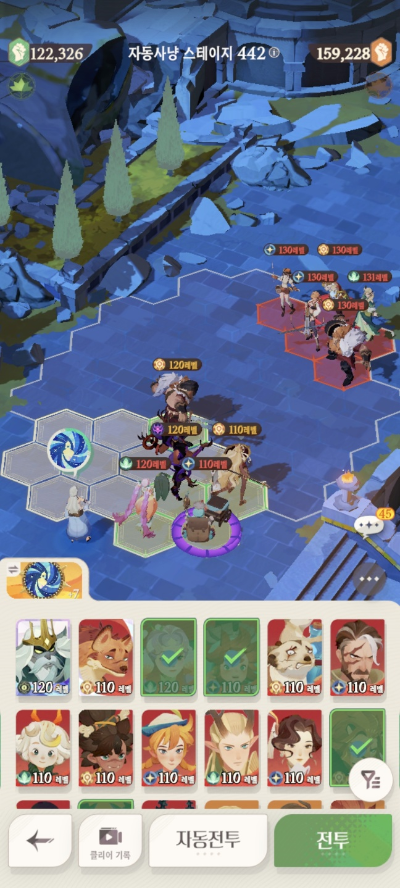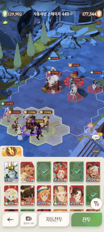 * 아레나 상점으로 휴윈 구매하고, 7일차 보너스 영웅으로 부루투스 뽑고, 길드 상점에서 카투투카 뽑음(스테이지 440부터)