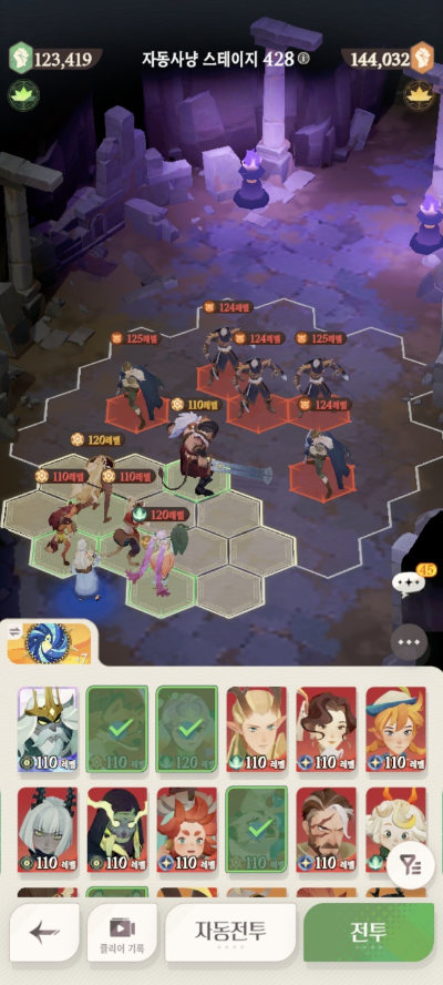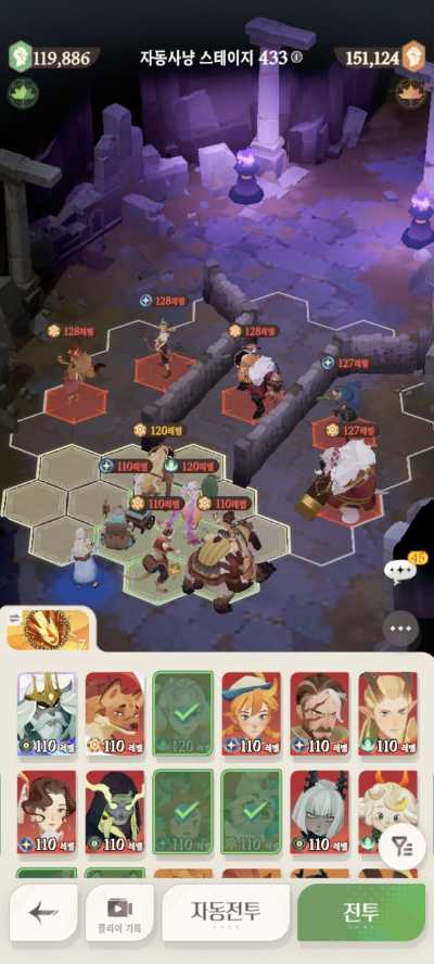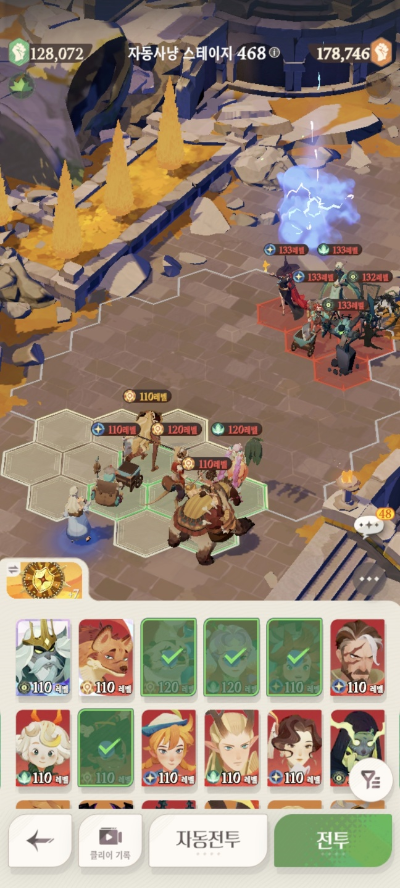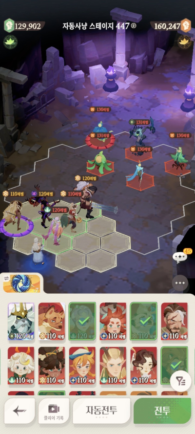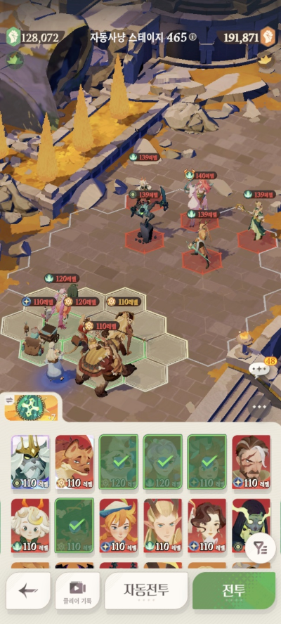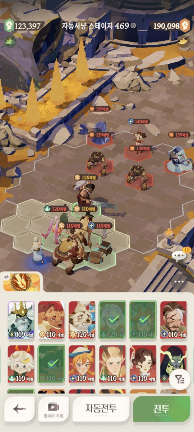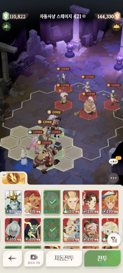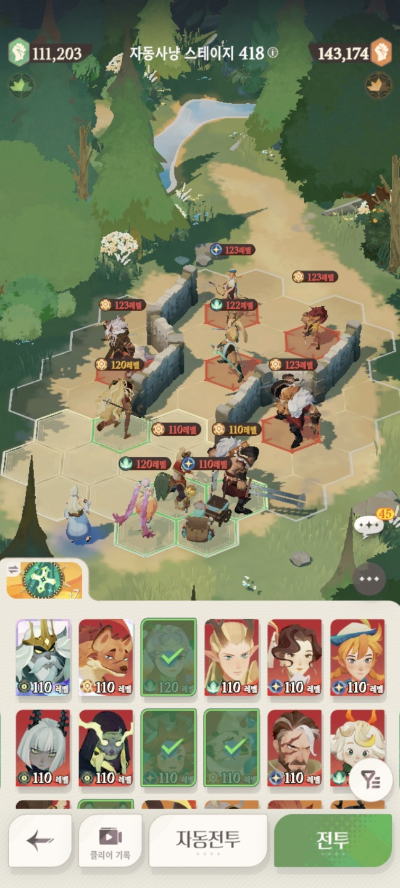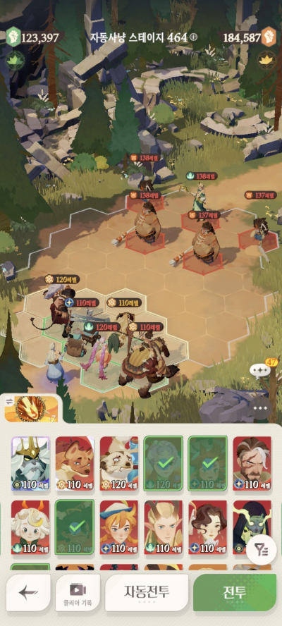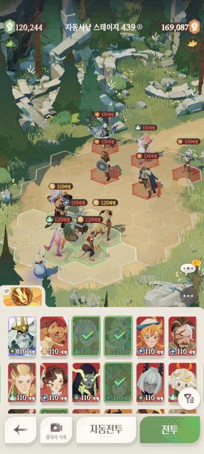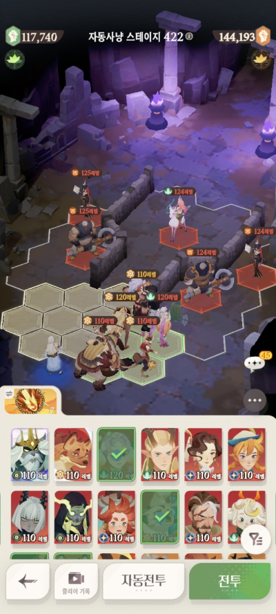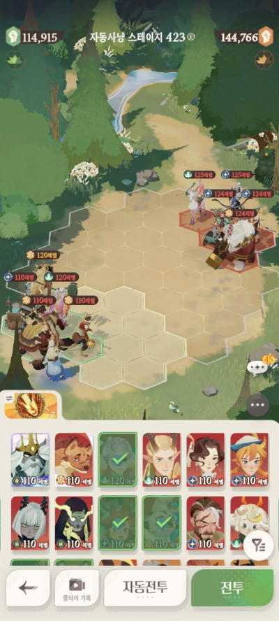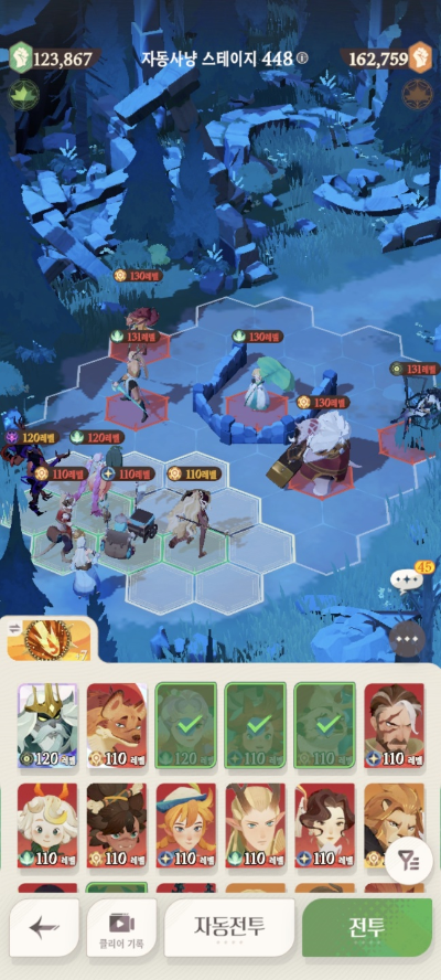 * 아레나 상점으로 휴윈 구매하고, 7일차 보너스 영웅으로 부루투스 뽑고, 길드 상점에서 카투투카 뽑음(스테이지 440부터)