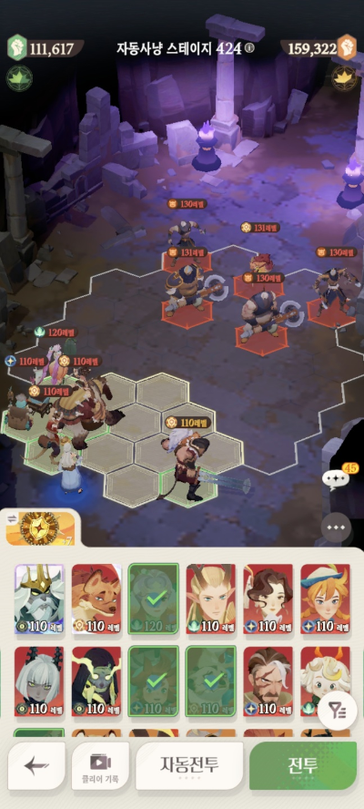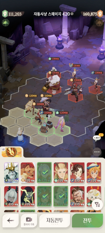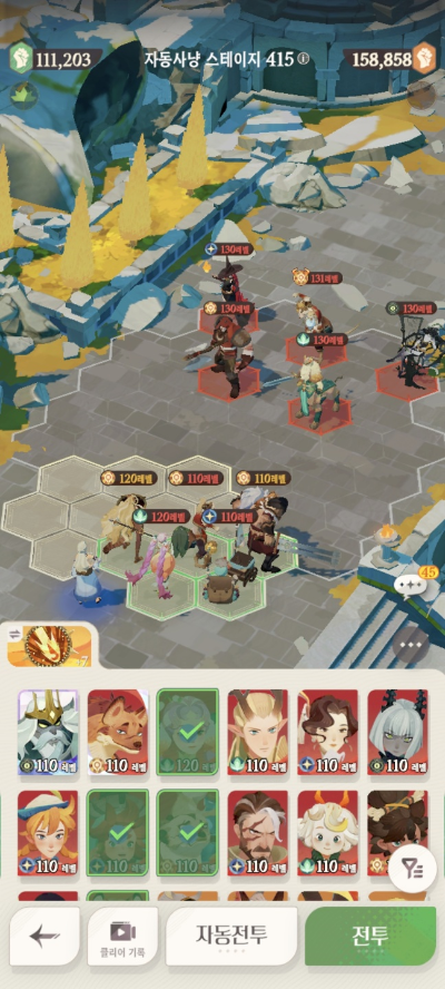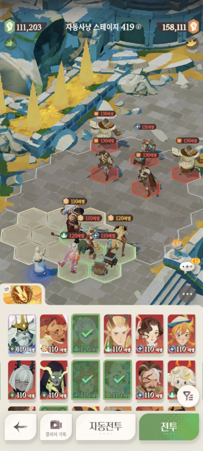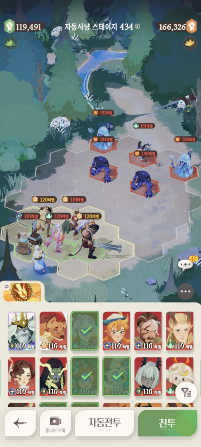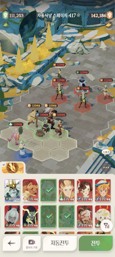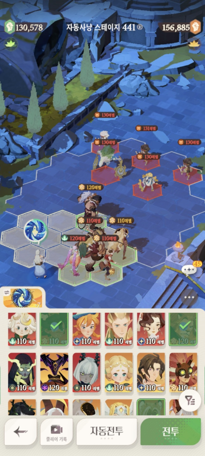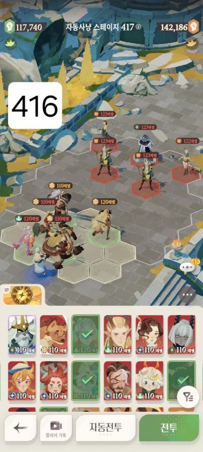 스테이지 416: 실수로 스샷을 못찍어서.. 416은 아래 진형/메아리로 잡았습니다.