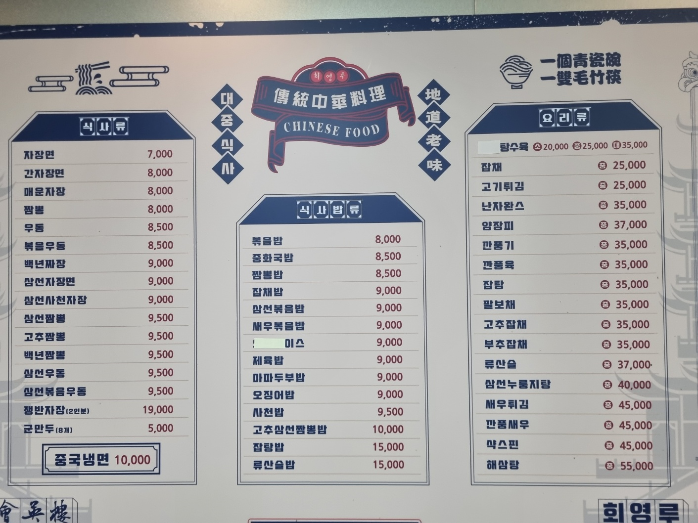 먹은 메뉴: 중국냉면(10000원), 깐풍면(9000원)