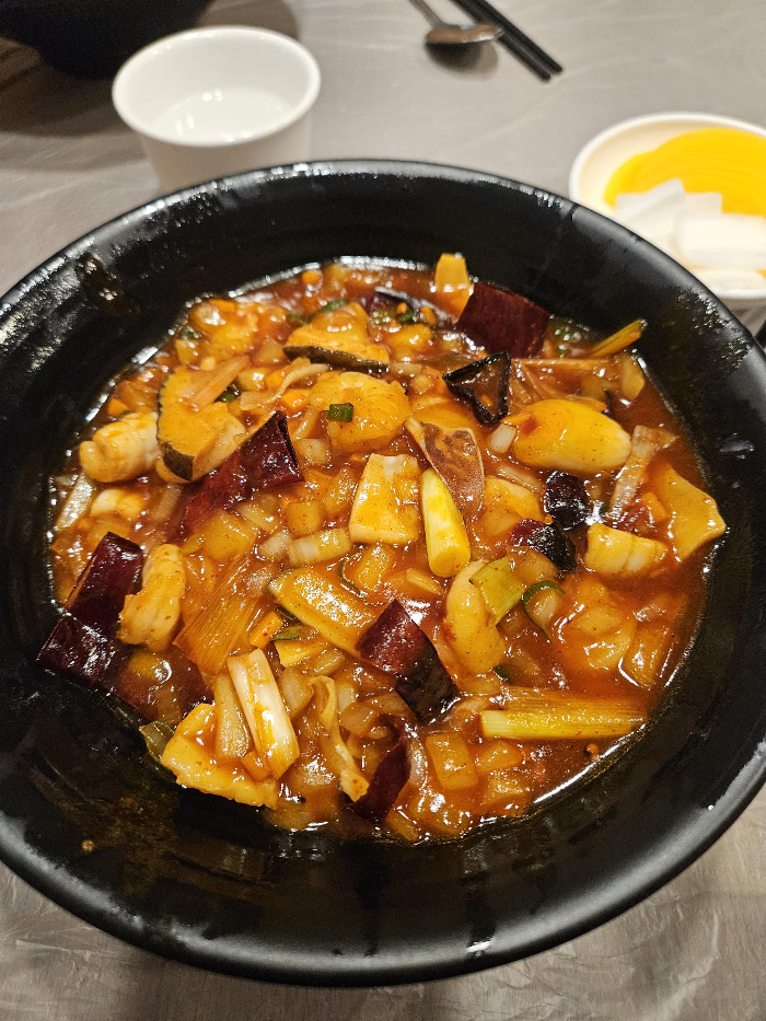 정갈하게 손질된 오징어와 새우가 많이 들어있어 씹는 맛도 좋았고... 어슷썰게 되어 있는 고추가 상큼한 향을 내주어서 이게 엄청 특이하고 맛있게 느껴졌다.