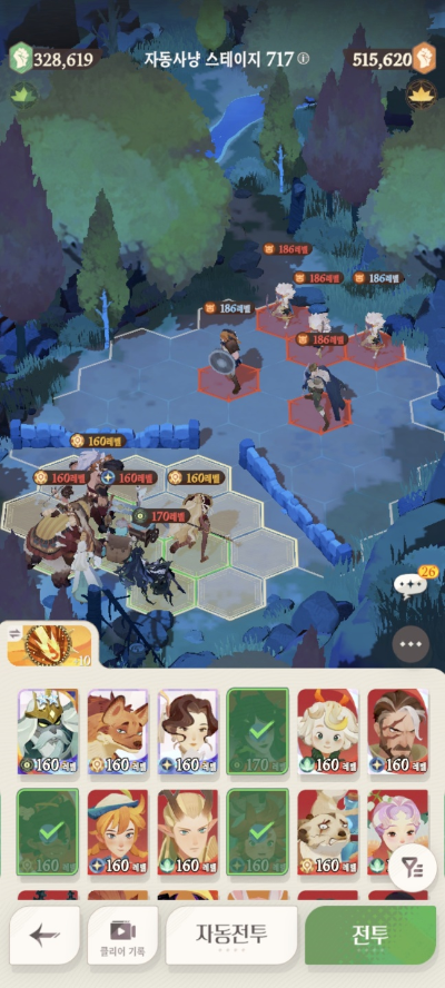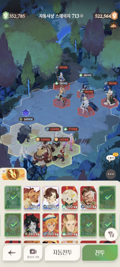 난 토란이 등급이 높아져서, 부루투스나 안탄이 좀 못버티면 토란을 넣고 이런식으로 트라이 했다. (내 조합을 참고하되, 본인 등급 높은 캐릭을 잘 이용해보자)