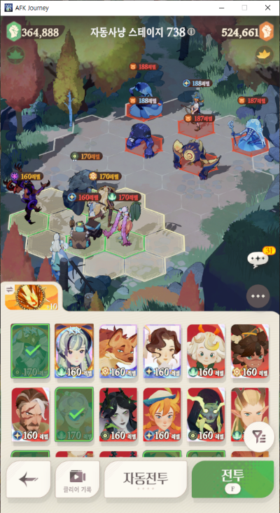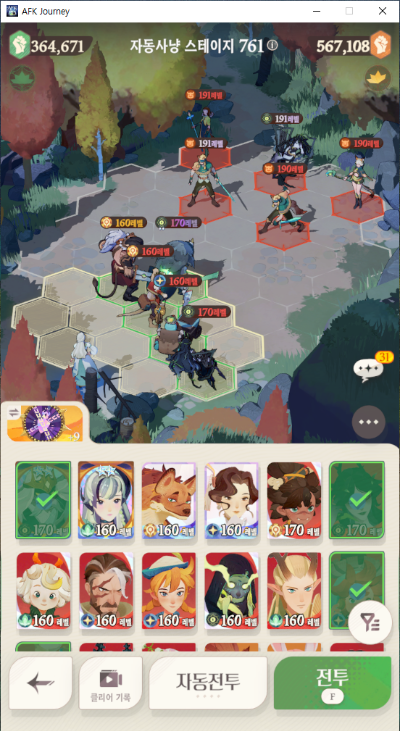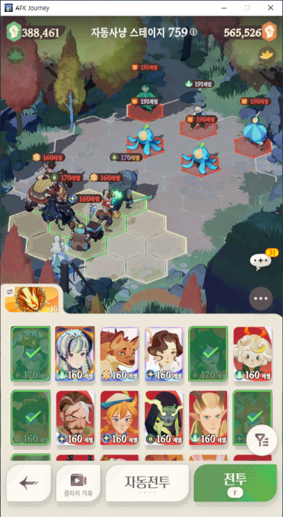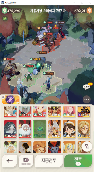 [AFK 새로운 여정] 멀티 파티 스테이지 1~9 자동 사냥 공략/ 진형/ 레벨 (월정액 과금)