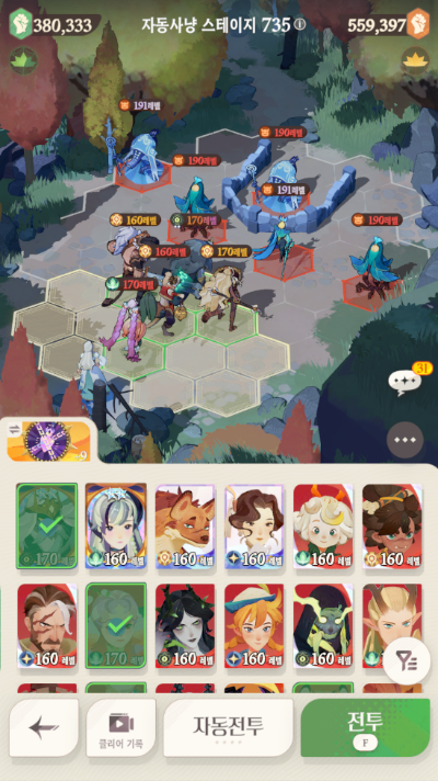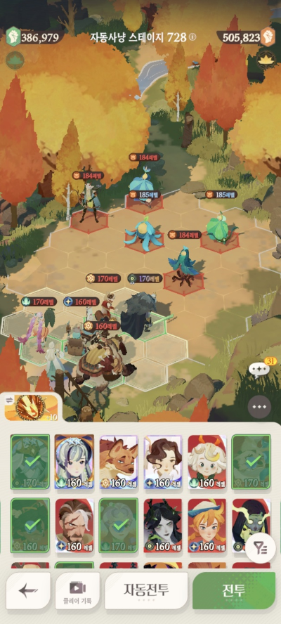 난 토란이 등급이 높아져서, 부루투스나 안탄이 좀 못버티면 토란을 넣고 이런식으로 트라이 했다. (내 조합을 참고하되, 본인 등급 높은 딜러/탱커 캐릭을 잘 이용해보자)