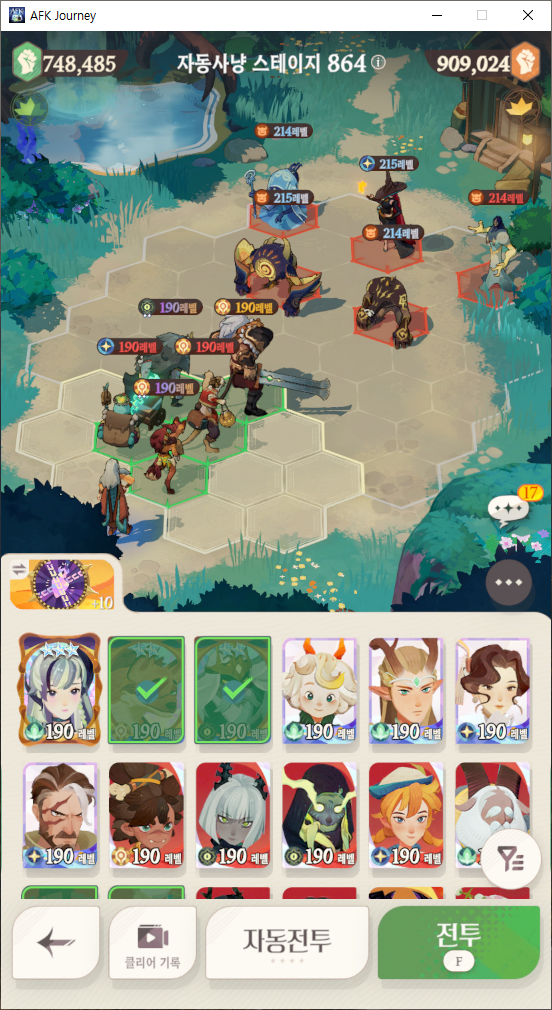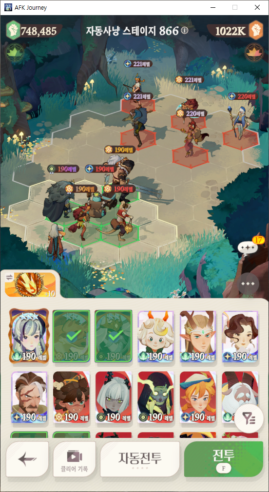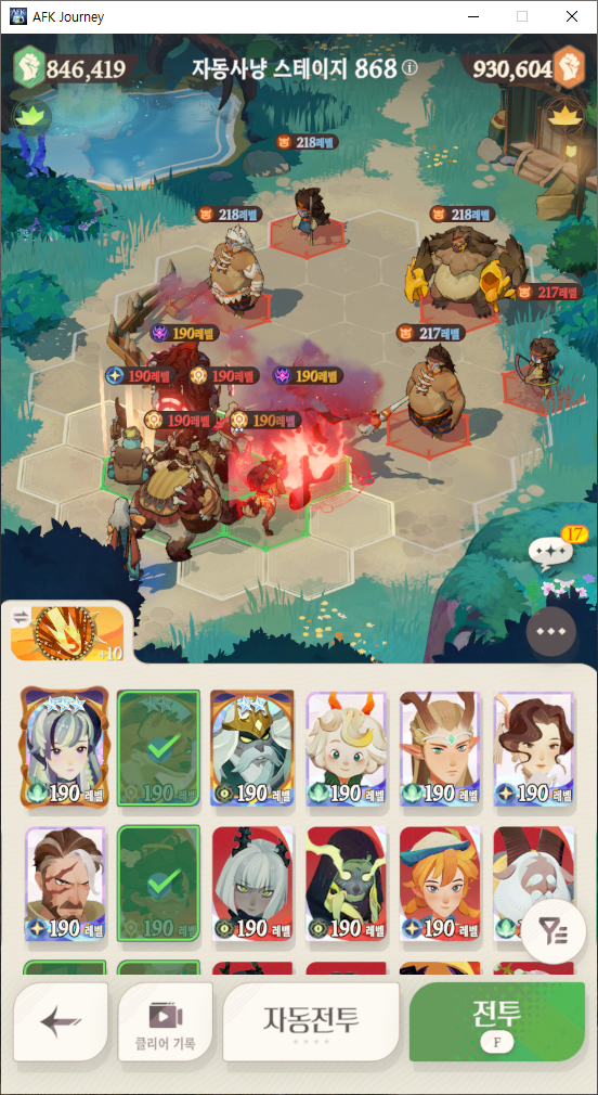 최근 이런저런 afk 이벤트로 레벨이 확 높아져서 두단계씩 렙업한 구간도 있으니 참고부탁드린다.
