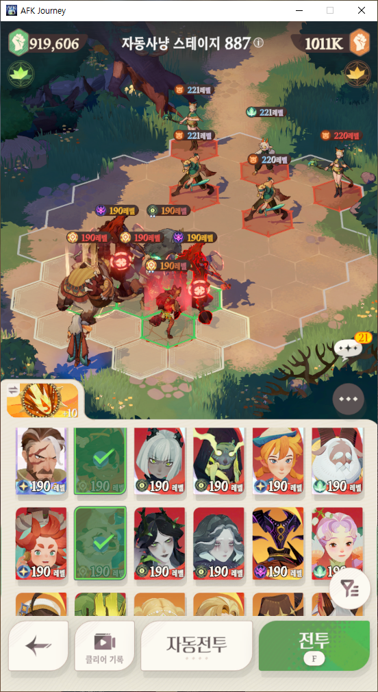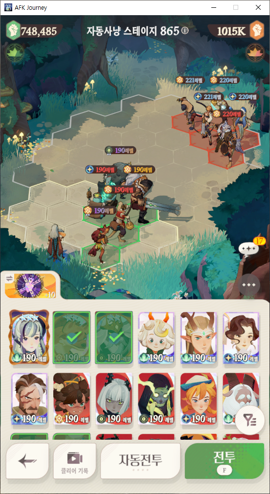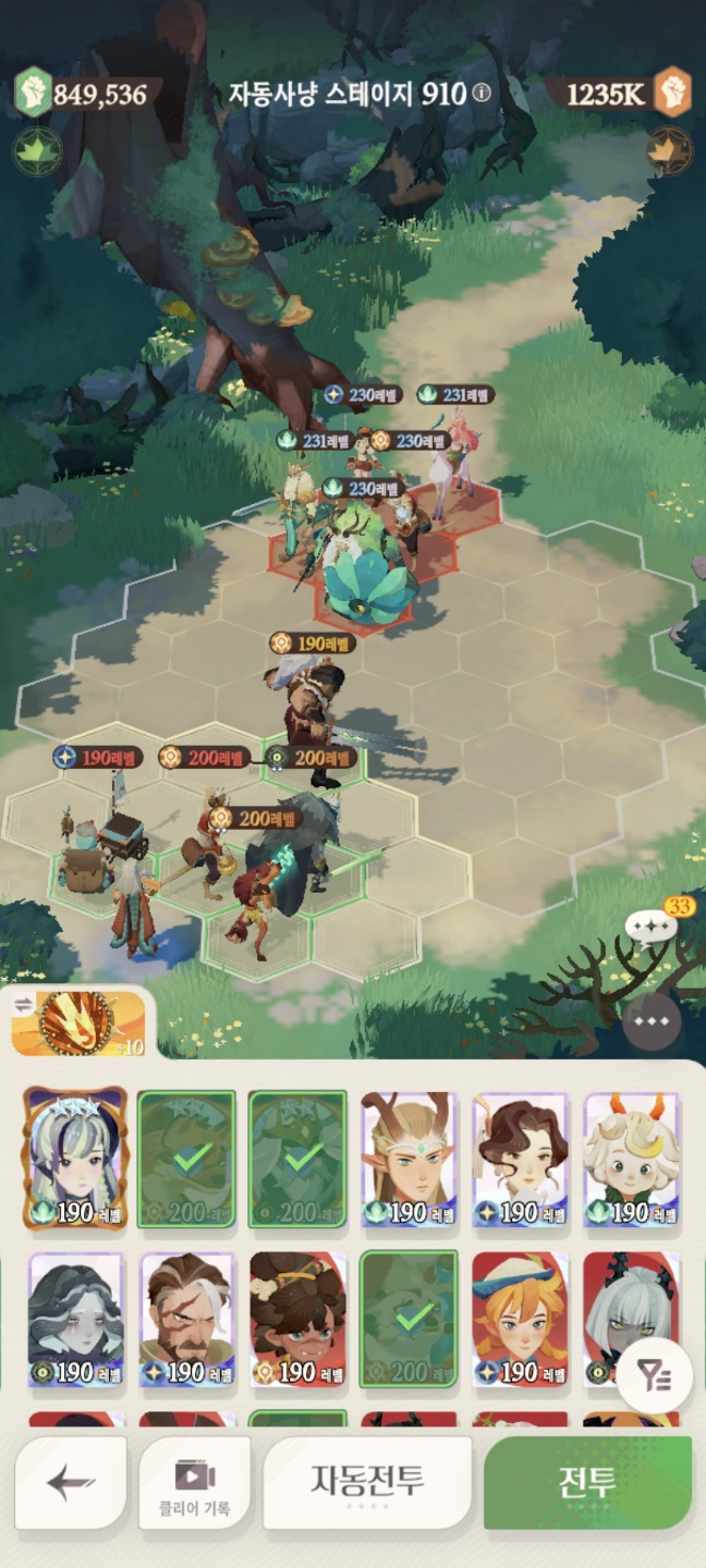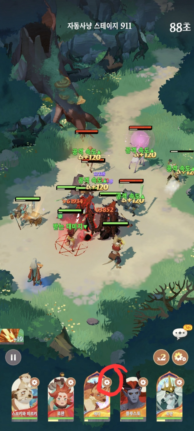 적 제일 센 딜러부터 수동으로 제거한다. 한두마리 제거후엔 다시 톱니바퀴 눌러서 자동으로 변경해도 된다.