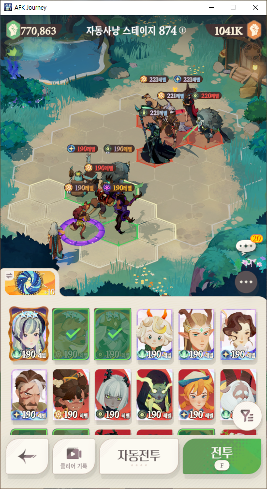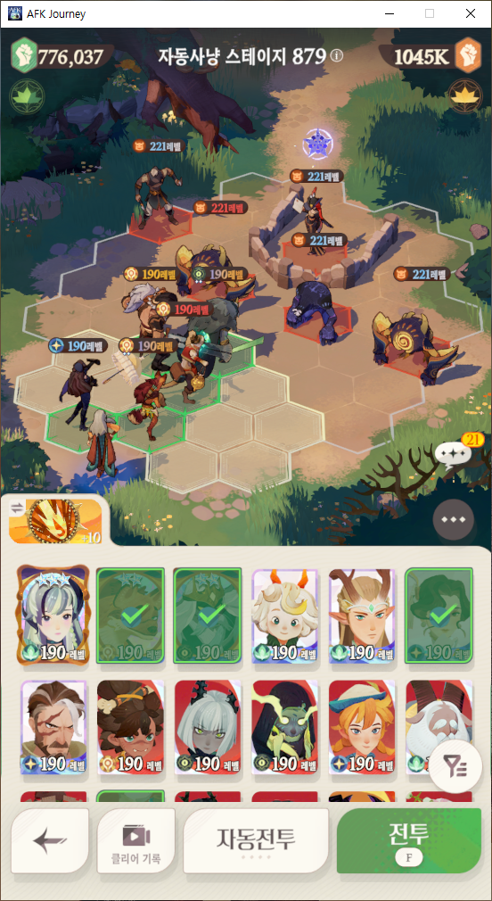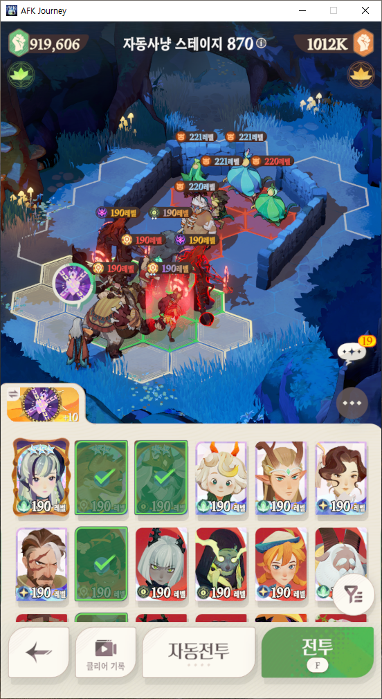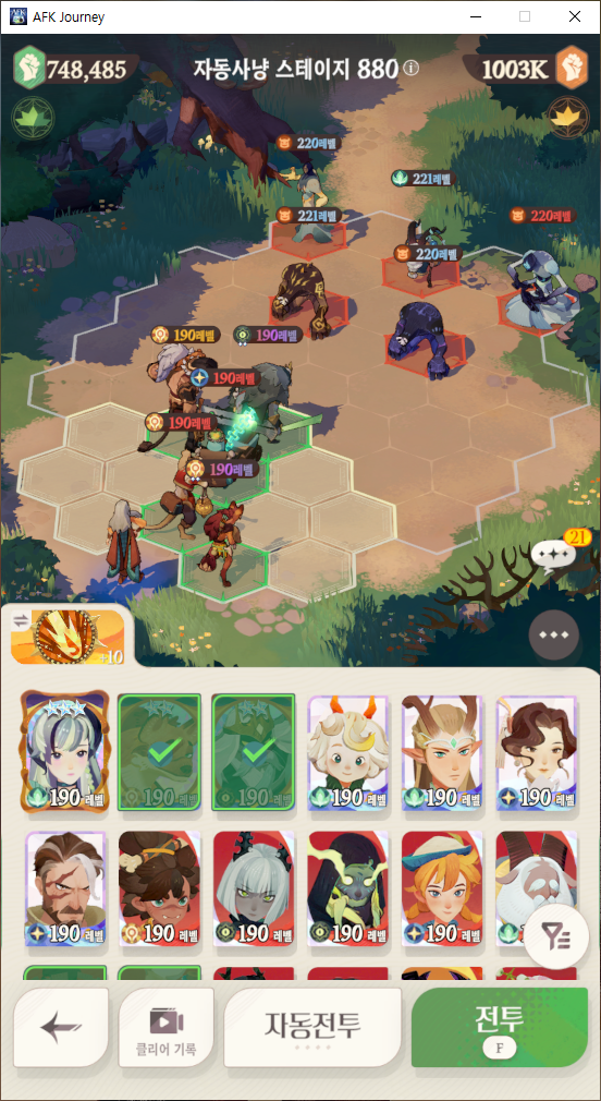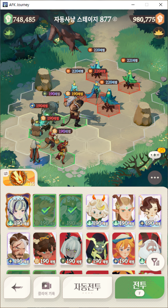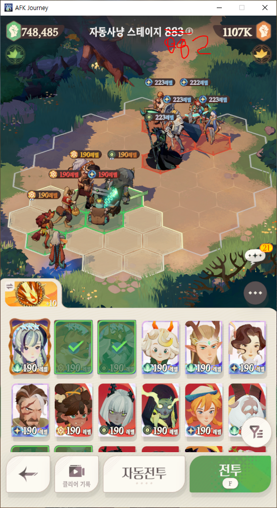 적 제일 센 딜러부터 수동으로 제거한다. 한두마리 제거후엔 다시 톱니바퀴 눌러서 자동으로 변경해도 된다.