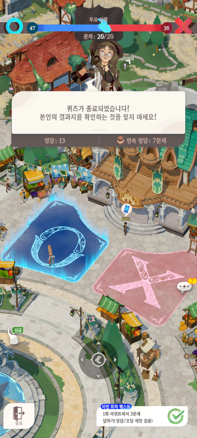 별들의 축제 이벤트의 지식 퀴즈는 오픈시간이 별도로 있어서, 아래 스크린 샷을 참고하자.