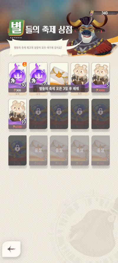 [AFK 새로운 여정] 별들의 축제 <축제 가판대> 인벤토리 정리 공략