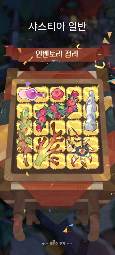 이벤트인 축제 가판대 이벤트는이는 인벤토리 정리하는 것으로 5명의 NPC가 쉬움, 일반, 하드 3개의 난이도로 나뉘어 있다.