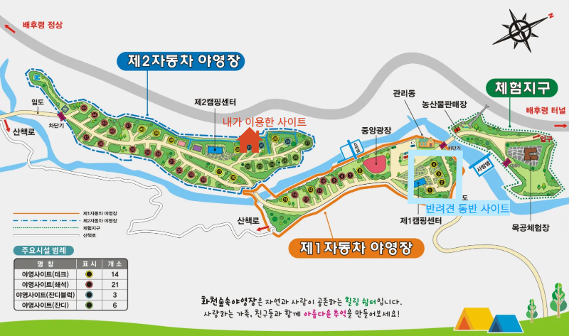 - 주소: 강원 화천군 간동면 배후령길 1144 화천숲속야영장