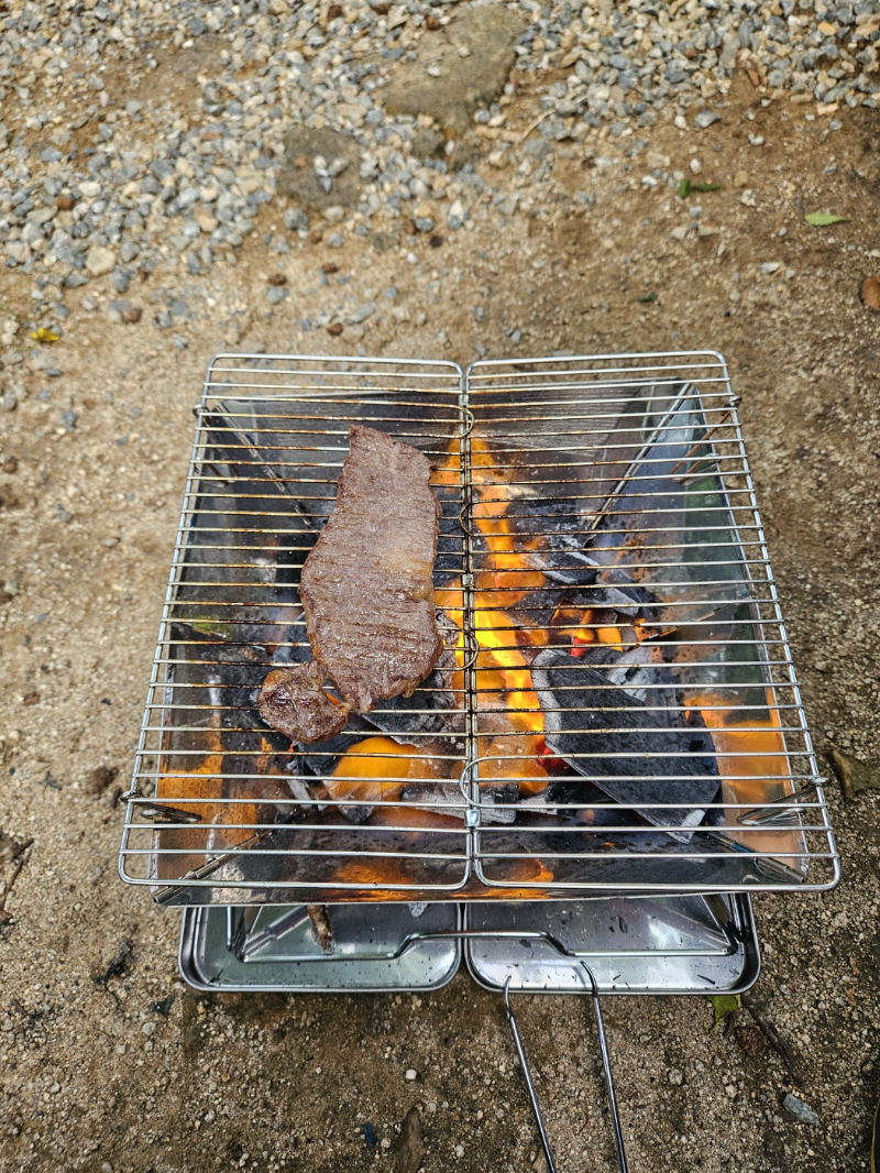 소고기도 굽고.. (제커 캠핑 화로대 2만원) 짜리.. 잘썼다! 포장도 잘접히고 만족