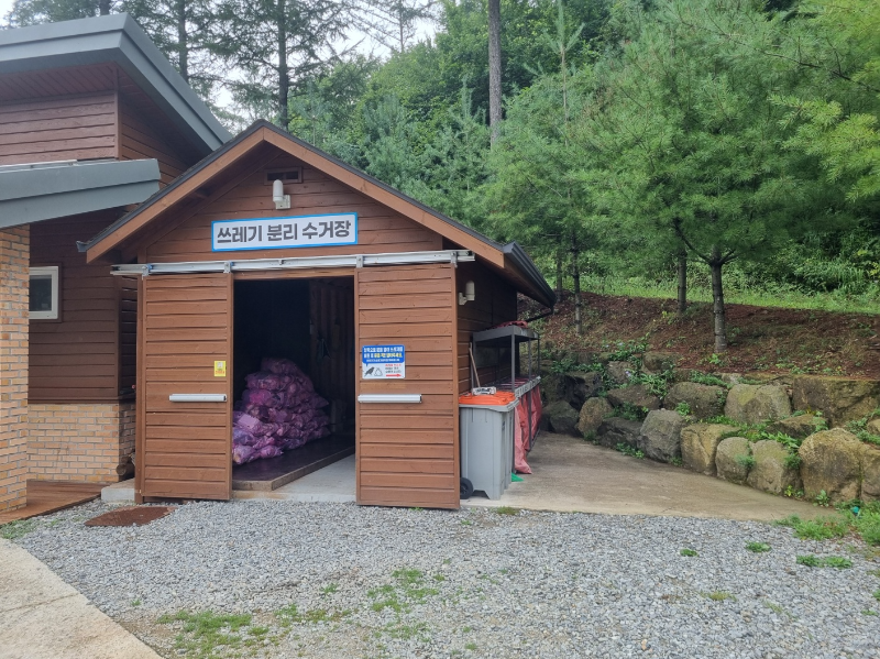 깨끗하게 관리되고 있는 쓰레기 분리 수거장.. 냄새도 안나고 관리하시는 분도 있고 좋았다.. (수거장 뒷편 나무도 정말 너무 예쁘다 ㅠ.ㅠ)