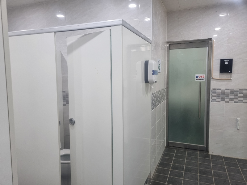 역시나 에어컨 나오고, 깨끗한 화장실. 저 문건너 4칸?짜리 샤워실이 있는데 샤워실 수압이나 온수 빵빵하게 나오는 점이 좋았다.