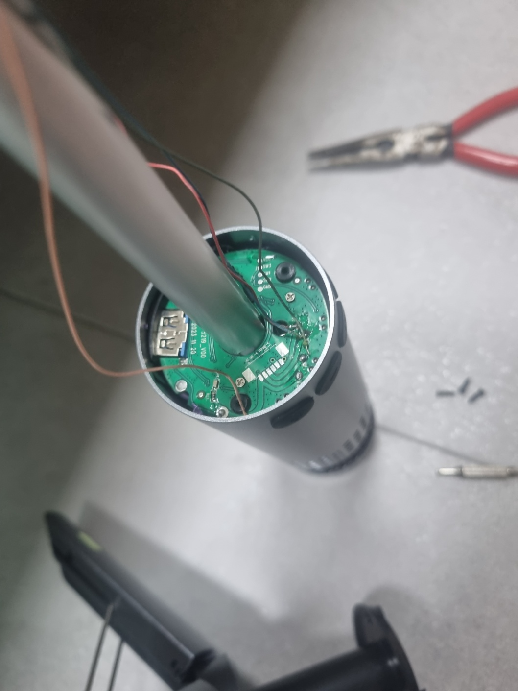 안경 나사 드라이버로 본체 열어서 납땜 다시했다.. (집에 사둔 납땜기가 있어서 정말 다행이야) 아웃타스크는 단선 사태 없이 자유자재로 돌아가더라..