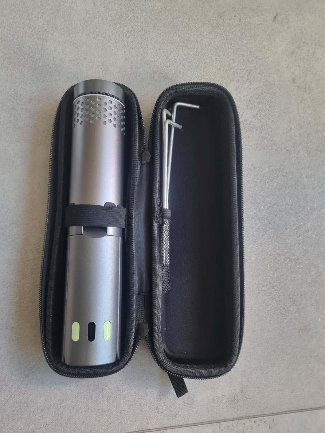 - 크기: 닫았을때 높이 25cm 지름 5cm, 폈을 때 높이 67cm(헤드까지 젖히면 71cm)