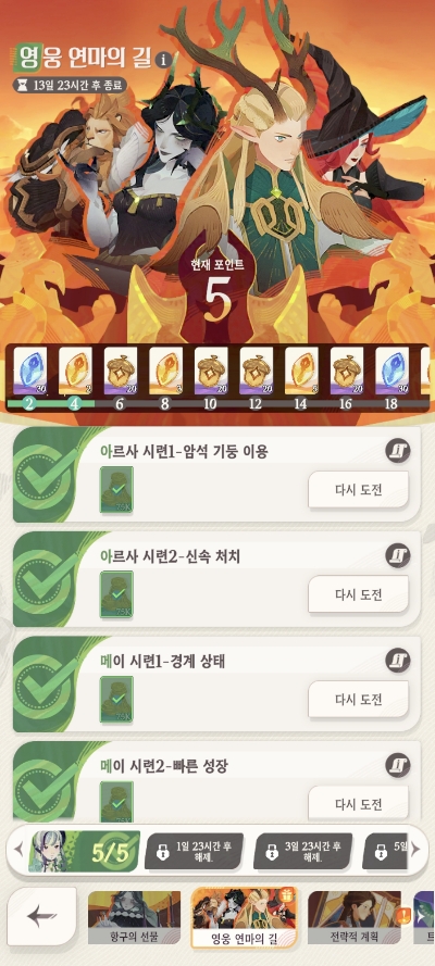 기존 시즌에도 있던 영웅 연마의 길이 다시 오픈 되었다.