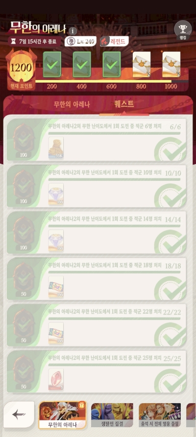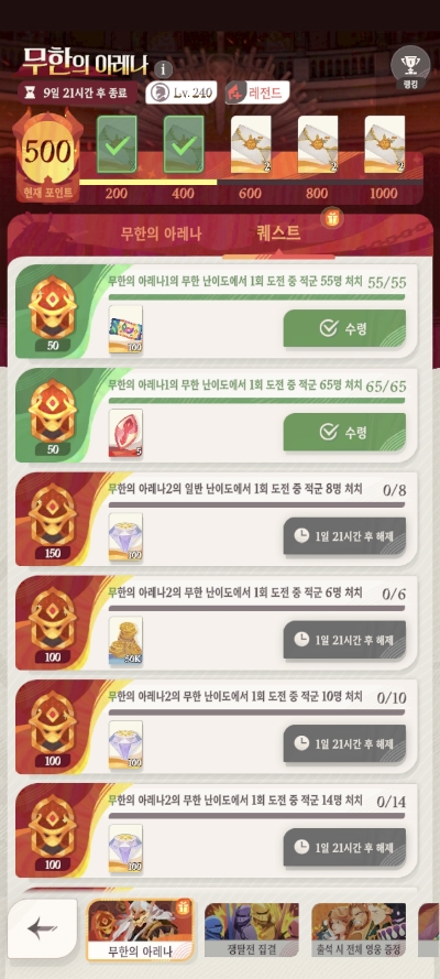 이번 이벤트 무한의 아레나는 젠되는 몹을 잡는 이벤트인데,