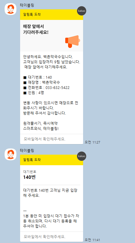 소문에 30분에 20팀 정도 빠지는 경향이 있다고 해서 11시 12분에 테이블링을 통해 원격 줄서기를 했고, 내 앞 대기는 21번이었다. 11시 27분에 9팀 남았다는 카톡이 왔고, 11시 41분에 입장 카톡이 왔다. (난 대기번호 140번이었다)