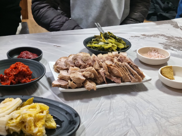잡내 없이 부드럽게 잘 삶아진 편육이 나온다. 살코기 부위보다 지방이 섞인 부위가 부드럽고 더 맛있었다.