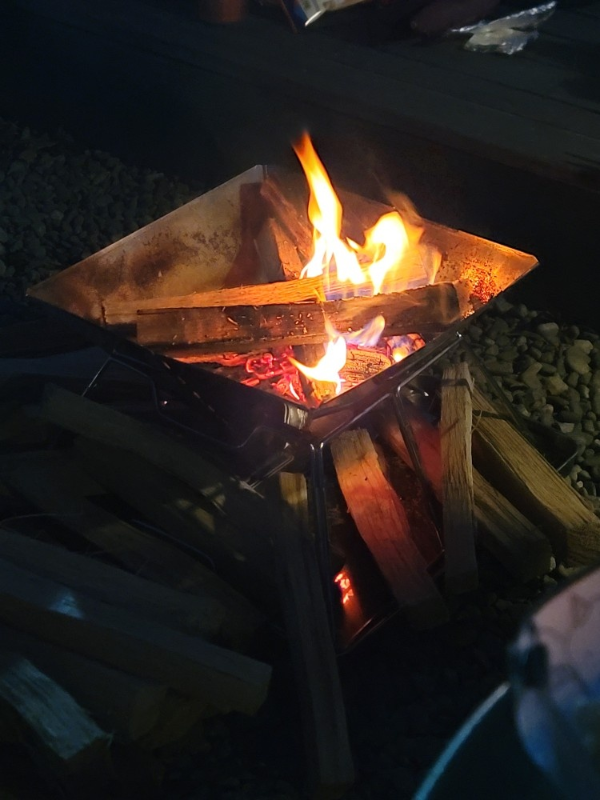 원래 솔캠을 하려고 했는데, 미국에서 온 친구 일정이 이 날 밖에 안되서 캠장와서 같이 불멍하고 저녁먹기로 했다. 그래서 갑자기 무거운 화롯대와 여분의 의자/테이블, 추가 식기류를 챙겨가서 좀 무거워 졌는데도 벌리 트레일러는 무난했다. 진짜 놀라울 정도로 잘 굴러간다