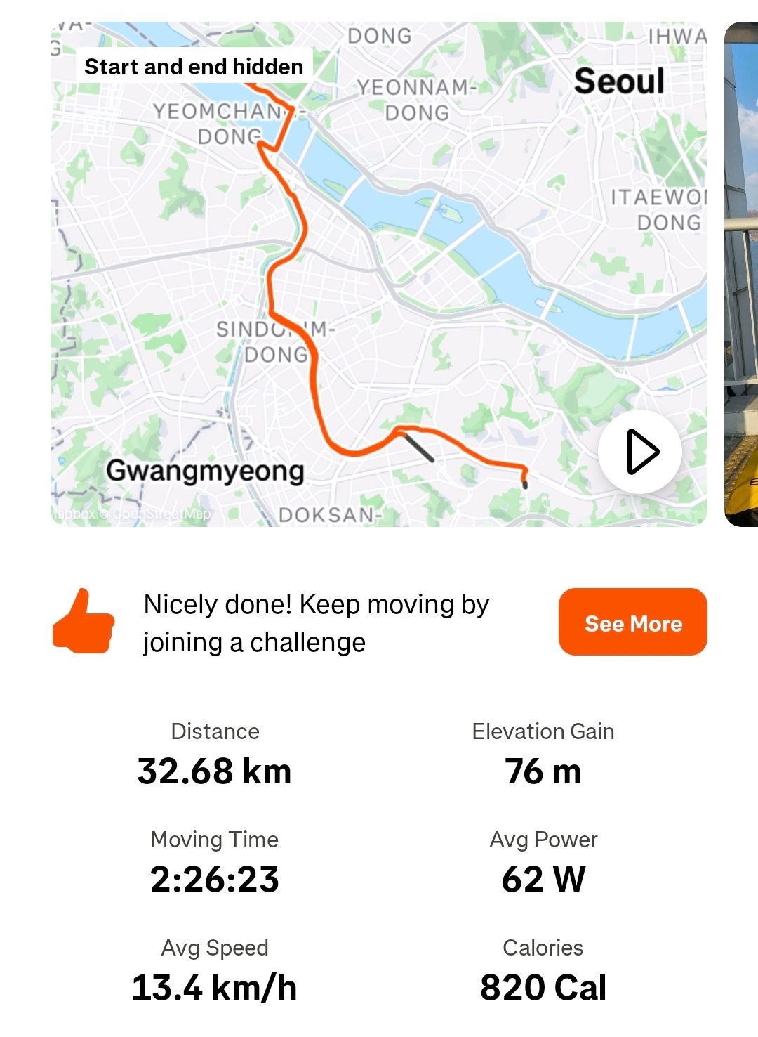 가양대교는 북 -> 남도 엘리베이터가 있다곤 하지만, 몇 달째 수리가 되고 있지 않다는 글을 읽어서 배제했다.