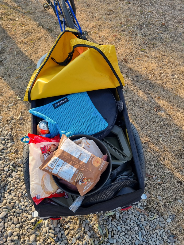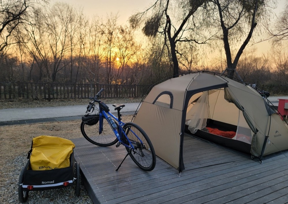 자전거 캠핑을 하고 싶었던 이유는, 친구가 당근마켓에서 무료로 벌리 트레일러 노마드를 나눔받아주었다.. 받았으면 써보는 게 인지상정 아닐까? (자전거에 다는 가방 vs 트레일러가 자캠의 영원한 고민인데 나는 고민할 기회가 없었다: 한국 환경에는 자전거 가방/패니어 방식이 더 현실적이긴 하다..)