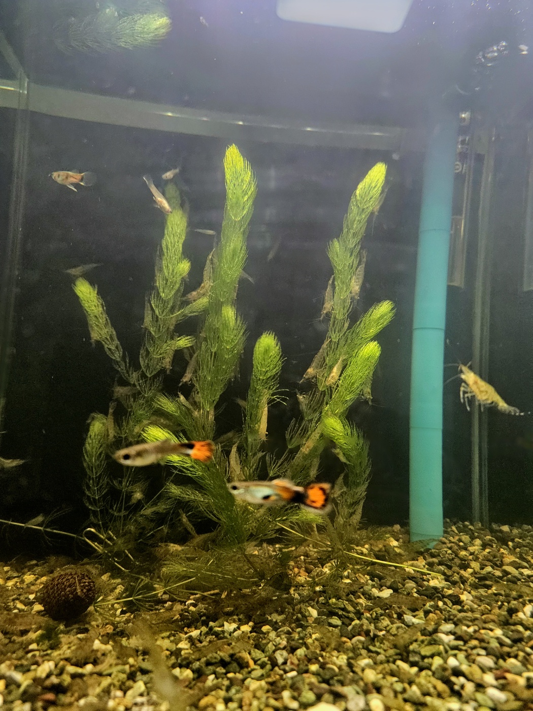 드루이드 피셜 생태계(?)가 좋은지, 현재 구피와 새우들 사고없이 안죽고 매우매우 잘크고 있다고 한다.