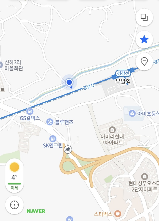 죽당천을 검색하지말고 죽당천삼거리(이천시 부발읍 아미리)를 검색해서, 길을 따라 운전해서 가다보면 주차할 만한 공간이 있다.