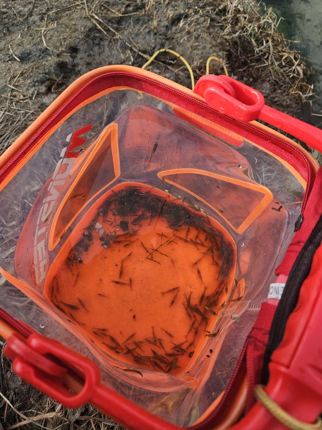 1시간 정도 했는데 조황은 이정도였다. 새우가 너무 많이 잡혀서 초반 이후로 새우는 다 방생하고 구피만 골라내어 담았다.