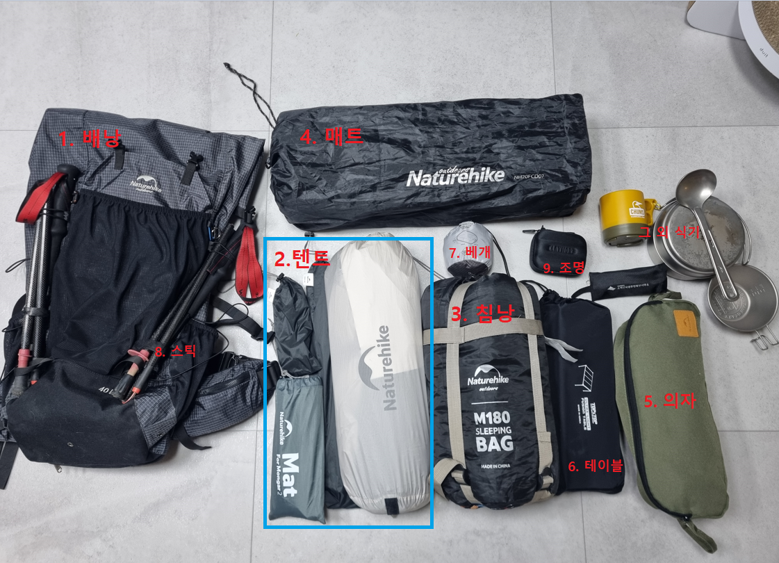 첫 백패킹을 준비하며, 장비를 기록해 보려고 한다.