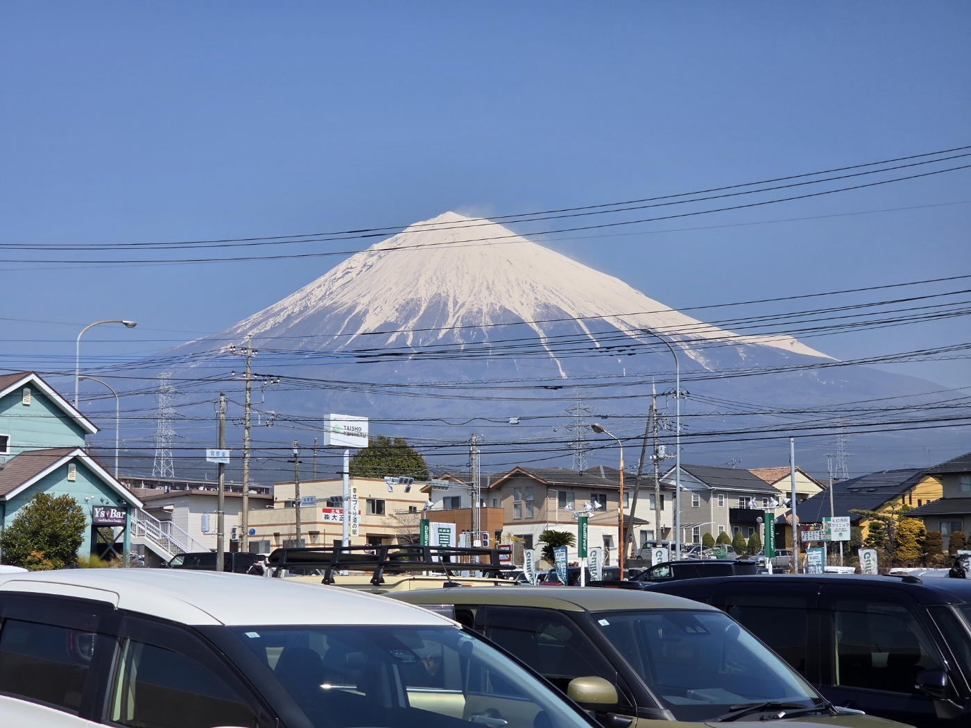 마트 앞에서 눈부시게 후지산을 조망할 수 있었다.