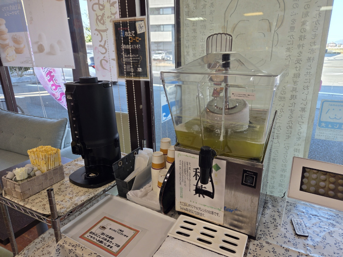 가게 내부에서 무료 녹차와 무료 커피를 제공하고, 일부 시식이 있어서 먹어보고 살 수 있었다.